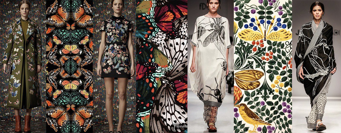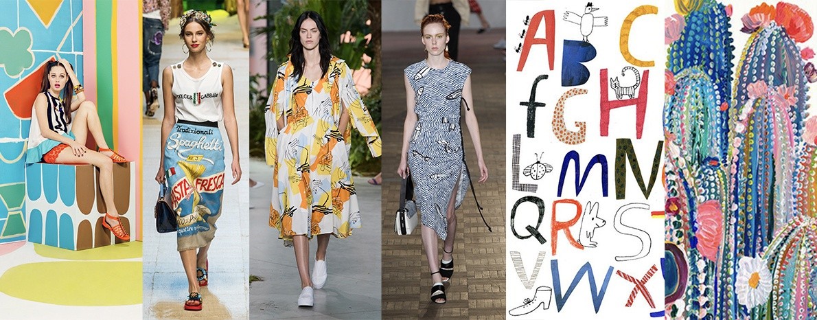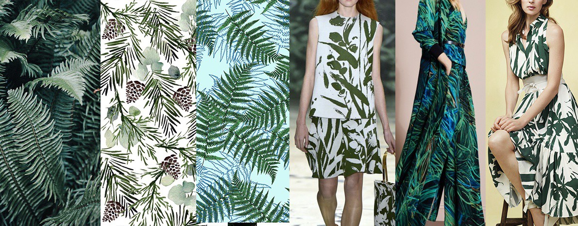 绿色植物成为焦点,打造春夏季全新的印花主题,而非前几季大热的热带奇异花卉,迎合了现时对于时尚园艺潮流的热爱,蓬莱蕉的多孔树叶尤为流行,醒目的字体与植物缠绕在一起