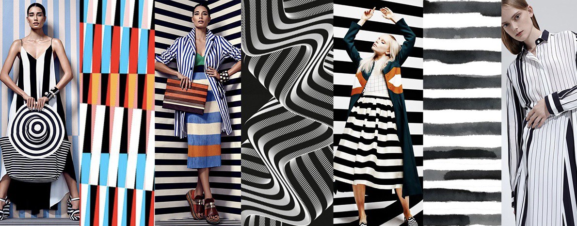 条格图案作为主要印花趋势,持续前一季的流行势头,与迷彩和豹纹印花相似,也是经典不衰的一类花纹,基础条纹、格子将在2018春夏涌现。它和花朵图案同为印花纹样中最关
