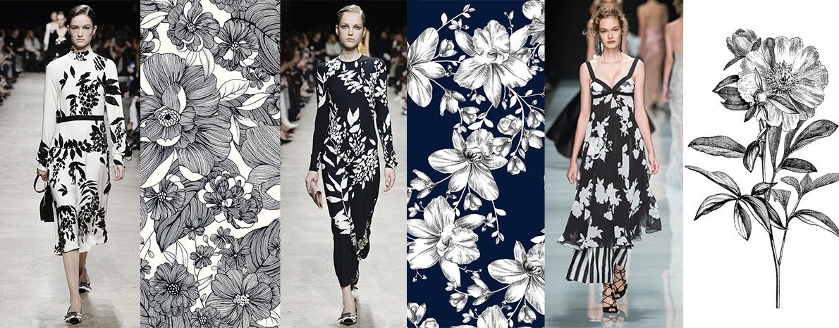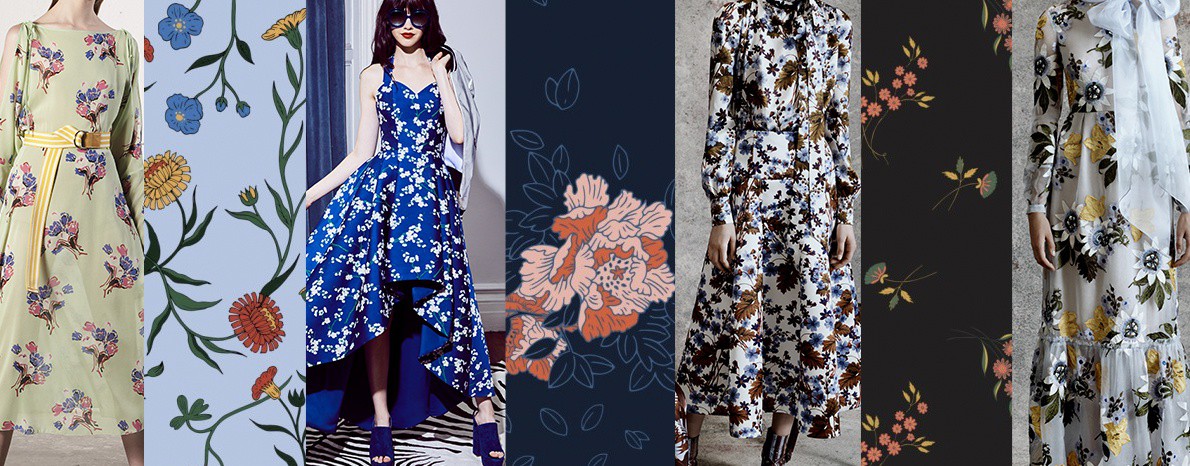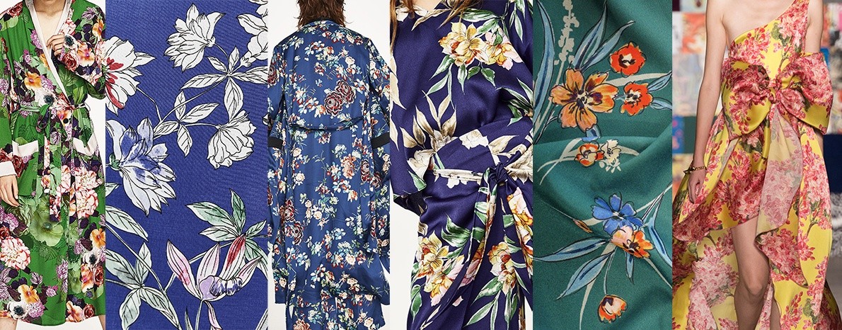 18春夏季我们将会被“彩底花卉”围攻,它将是18春季年轻连衣群、女士衬衫、半裙等春装争相采用的关键印花,在泳装和内衣等单品的设计中也会被广泛应用。彩底花卉在17