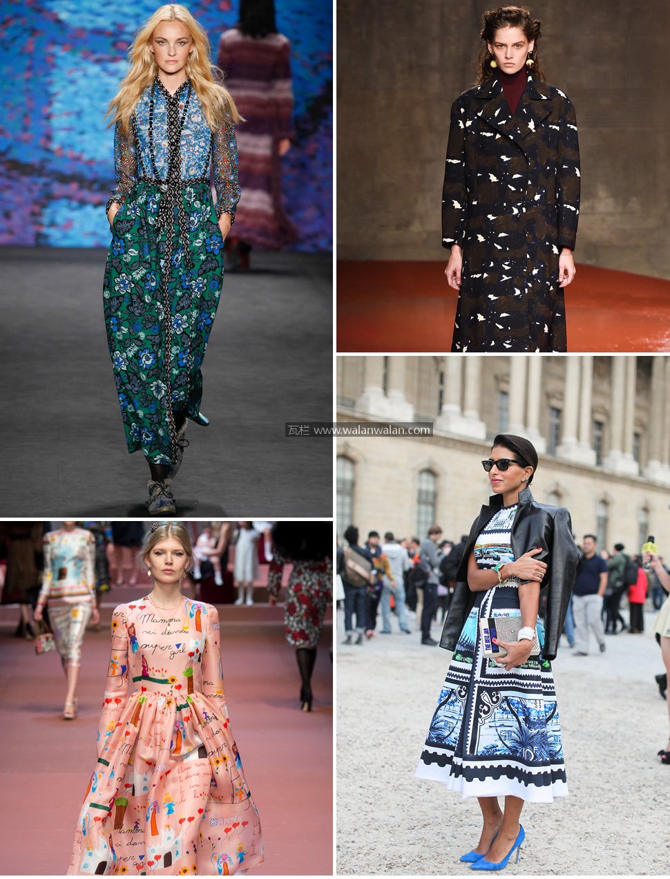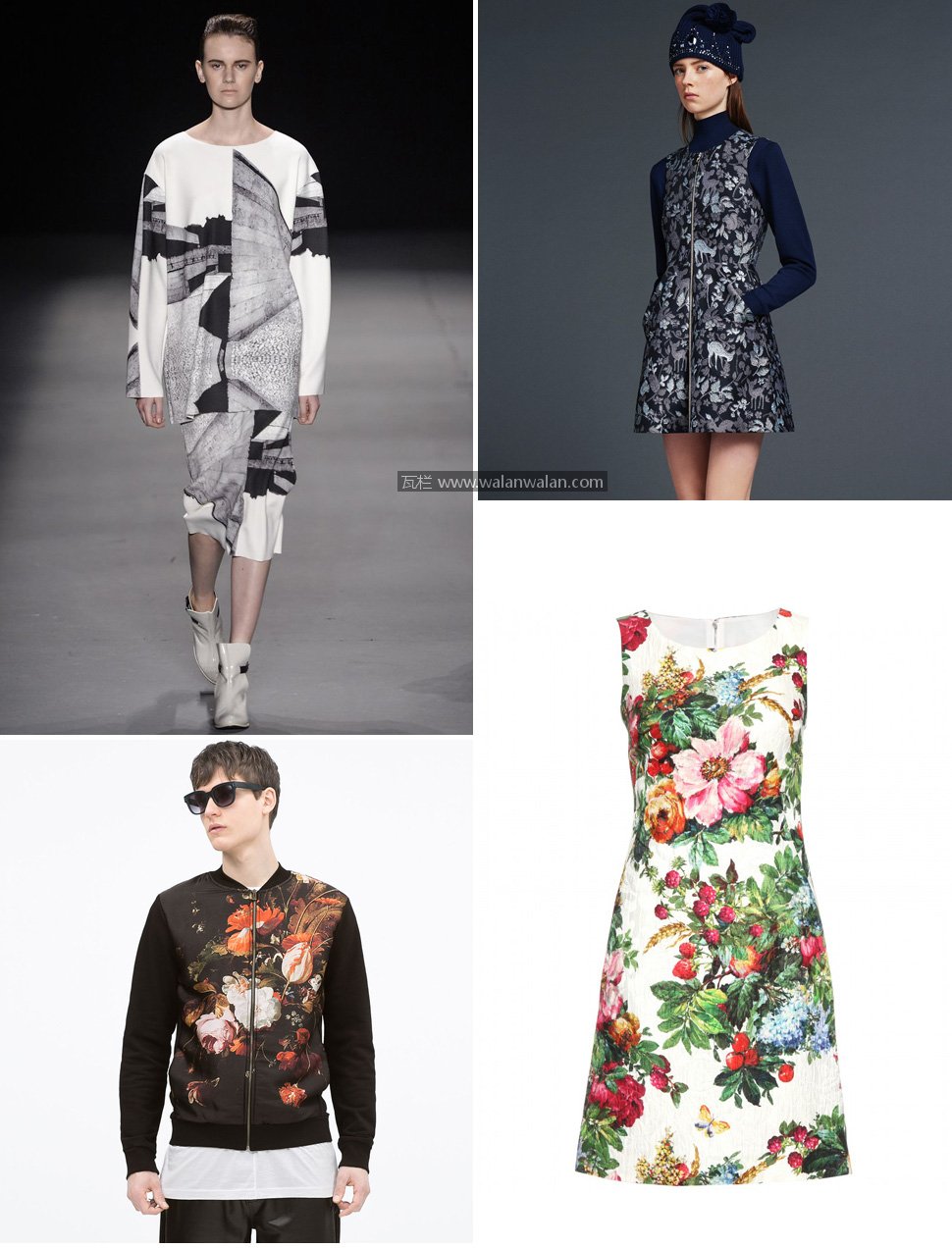每一年、每一季度我们在秀场上看见各种数码印花的身影,闪光灯下的模特们缓缓走来,不禁令人注目。其中最令人期待的当然是杜嘉班纳(Dolce & Gabbana)两位设计师的作品每次都本着西西里的主题,却每一季都能带给我们巨大的惊喜。文艺复兴油画、建筑摄影、金币、钥匙、玫瑰、儿童的绘画……各种意想不到的图案灵感都能被运用到印花、刺绣上,重点是还那么好看呢。当然其他品牌也不甘示弱,各种创意印花扑面而来,真让人目不暇接。