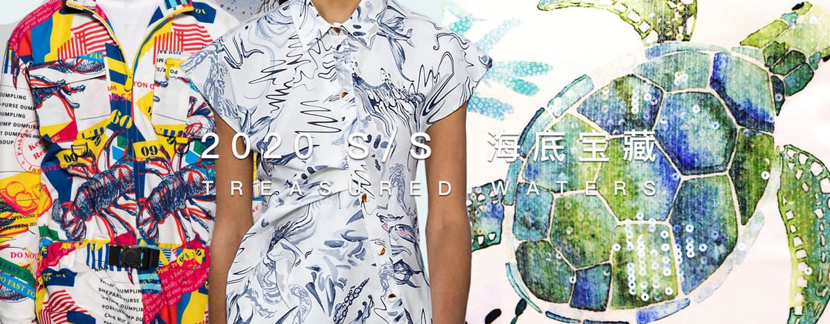 2020春夏,令人审美疲劳的棕榈树印花和苍翠的绿色植物不再流行,色彩明快的温室花朵、电子风兽皮、水果印花才是重点。人气手工彩绘风格流行,在展会上随处可见。突破异