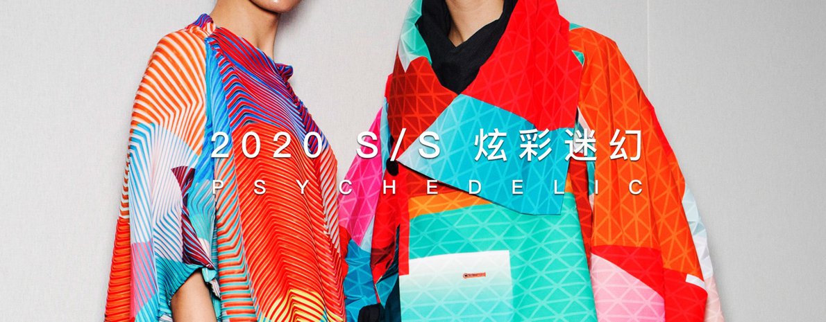 迷幻图案以彩虹亮色竖条纹更新,在2020春夏焕然一新,醒目超真实色彩点缀黑底或白底,能吸引喜爱醒目造型的千禧一代和Z世代。除此之外,单色的所有服装都具有广大的市
