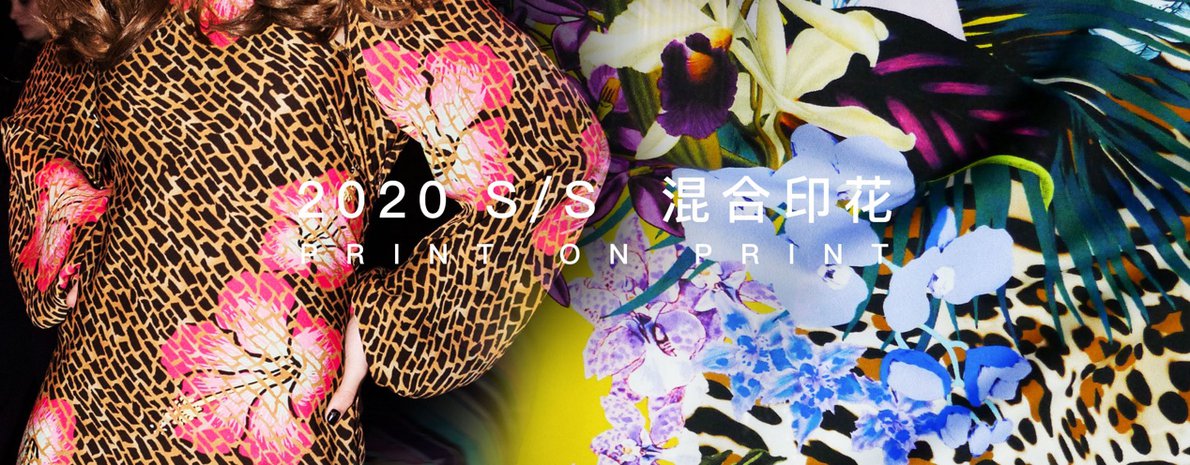 极繁主义称霸2020春夏,各式各样的印花主题相碰撞。混合印花无需遵守任何守则,混搭兽皮纹、扎染、更多图像元素采用随意布局,更新审美疲劳的热带印花。该商业化主题为
