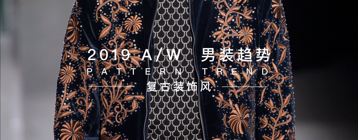 复古装饰风灵感来自T台,编织织锦和装饰佩斯利图案,运用在同色调华丽色盘中。采用锦缎、天鹅绒和植绒面料搭载图案打造派对晚礼服和西装,用度假衬衫和羽绒夹克等年轻平价