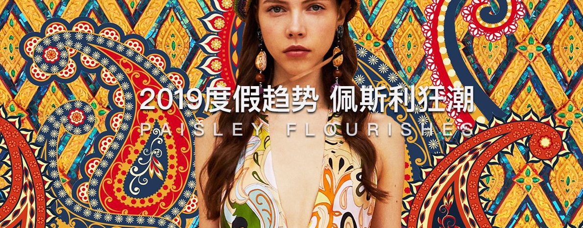 2018/19秋冬波西米亚风情复兴,在此基础上,佩斯利印花也强势回归。 迷幻漩涡佩斯利印花让超大尺寸成为关键,也有更波西米亚风、更具装饰感的设计。佩斯利印花搭配