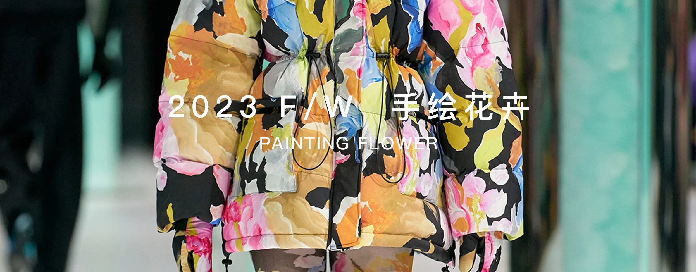 手绘花卉图案成为主流,笔触感手绘风格翻新女装印花,细腻的绘画风格显得柔和、自然,为服装增添艺术感,在各市场和类别中营造浪漫感觉,让连衣裙、衬衫等简单的服装单品也