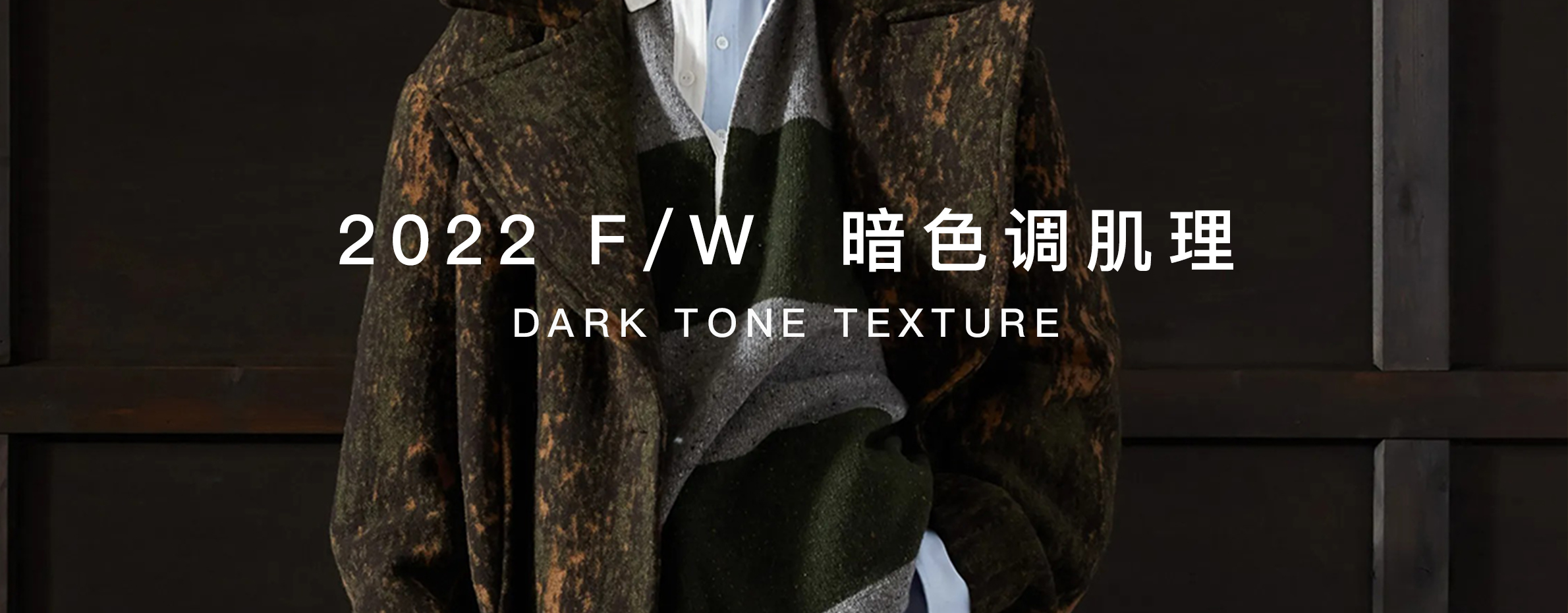 纹理图案在男装上一直都是主流印花,2022秋冬季暗色调的纹理图案会被更多人接受,简单的色彩调色盘和抽象风格的图案,适应的服装品类范围也会更广泛,非常值得尝试。