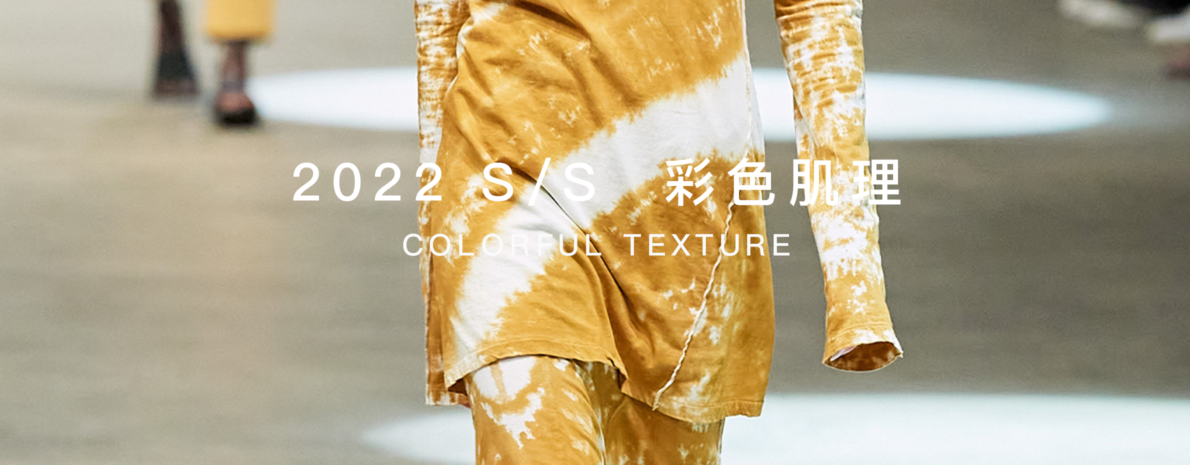 扎染、斑驳笔触、水彩水渍等抽象肌理图案在2022春夏女装发布会持续流行,成为最重要的印花趋势被多数品牌设计师选中,柔美的夏季轮廓配以丰富多彩的色彩,打造唯美造型