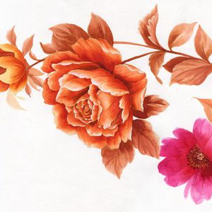 手绘 花卉 叶子 水彩