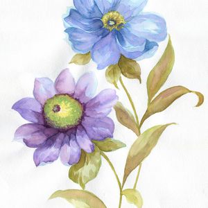 手绘 花卉 叶子 水彩