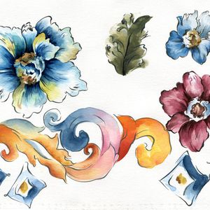 手绘 花卉 叶子