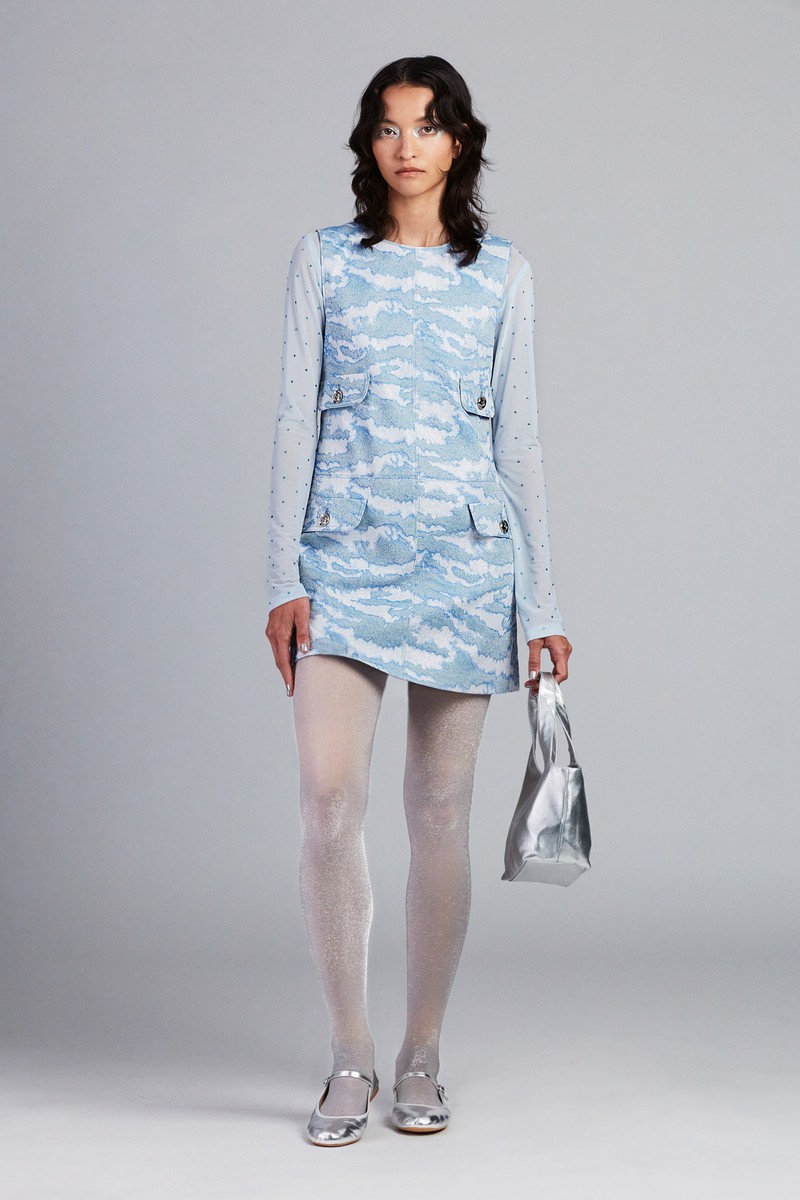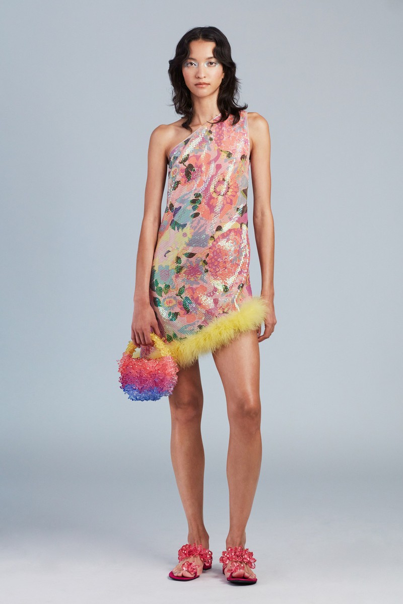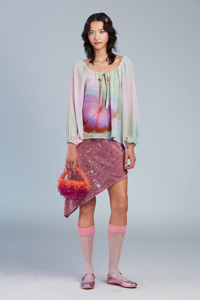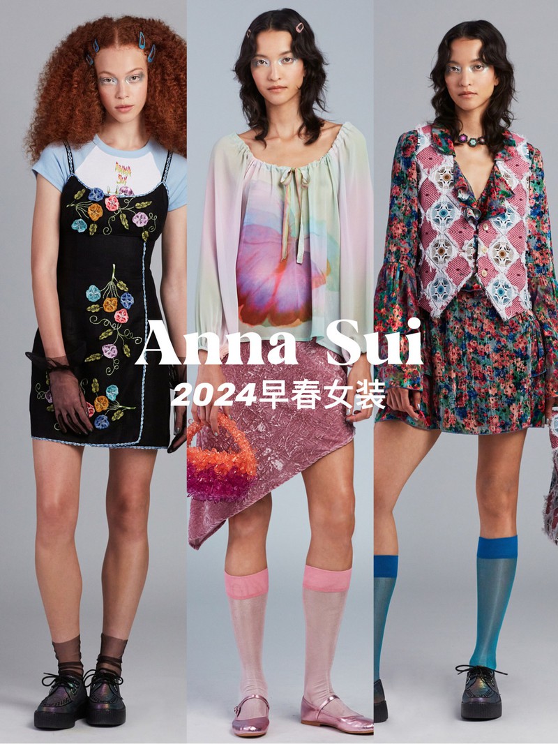 Anna Sui 2024早春新系列从东南亚女性的传统穿着寻找灵感,集合安娜苏品牌标志性的异想天开风格,呈现了一个既带有传统刺绣元素,又融合了前卫风格的度假系列。扭曲流动的水波纹,在霓虹彩色和光泽感面料的演绎下迷幻动人。超大的蝴蝶、抽象的花卉,都与春夏的粉彩色调结合在一起,带来柔和的氛围,而刺绣呈现的暗色调花纹,又是另一种不同的呈现。