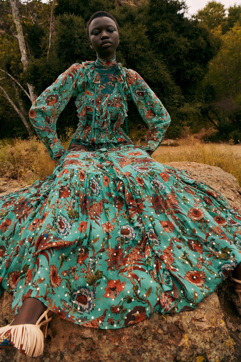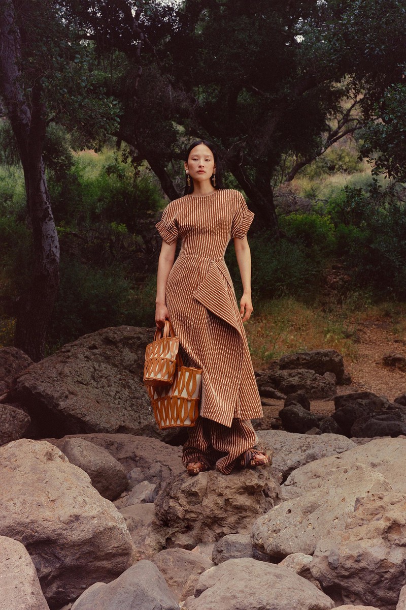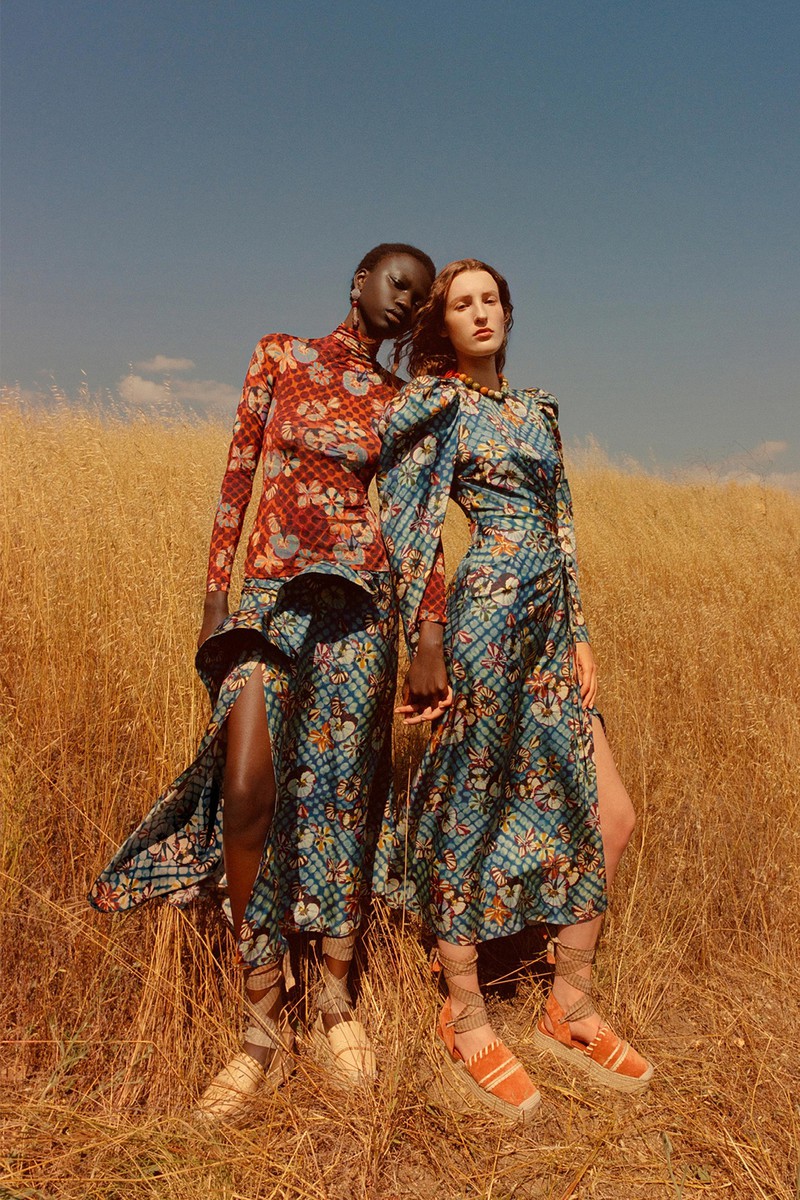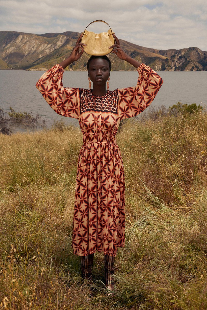 Ulla Johnson 2024全新度假系列一如既往地繁花似锦,复古的中明度色调演绎民族和部落风情。几何与花卉的混搭形式再次出现,但是不是以前的传统格纹,仔细看而是带有扎染纹理的格纹。带点肌理感的细节是未来图案设计的重点之一,你get到了吗?