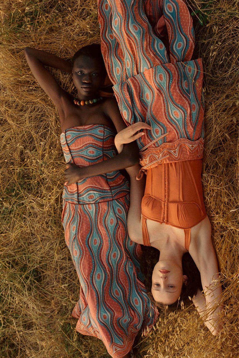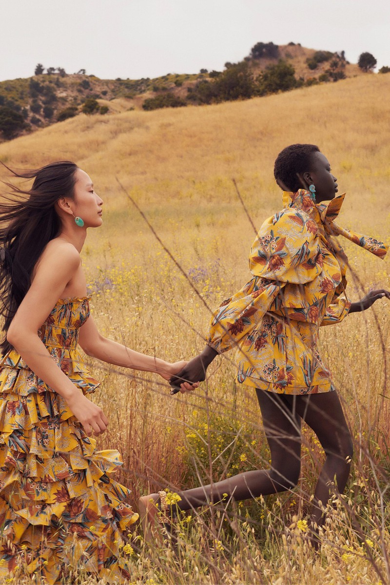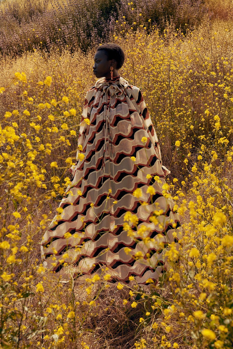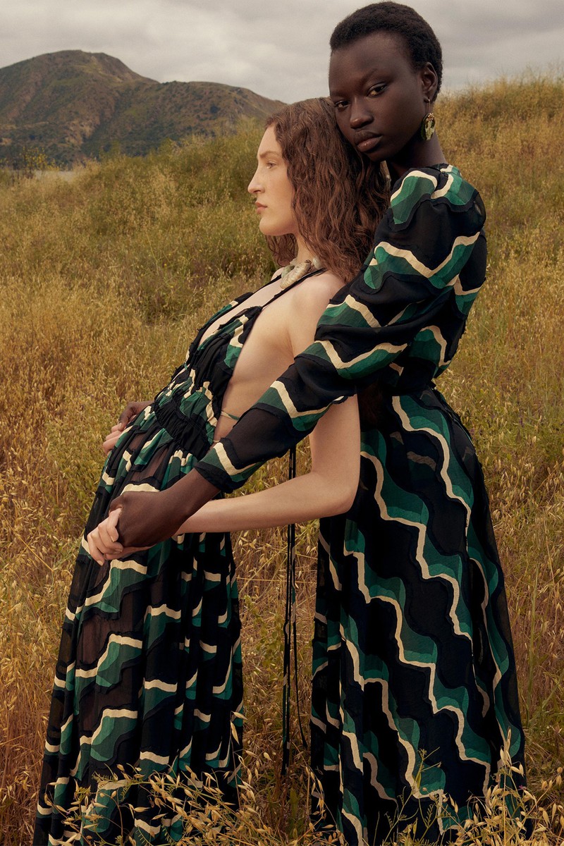 Ulla Johnson 2024全新度假系列一如既往地繁花似锦,复古的中明度色调演绎民族和部落风情。几何与花卉的混搭形式再次出现,但是不是以前的传统格纹,仔细看而是带有扎染纹理的格纹。带点肌理感的细节是未来图案设计的重点之一,你get到了吗?