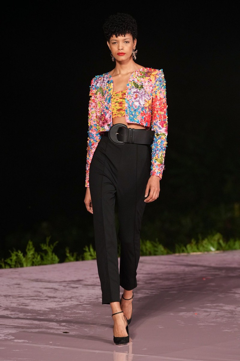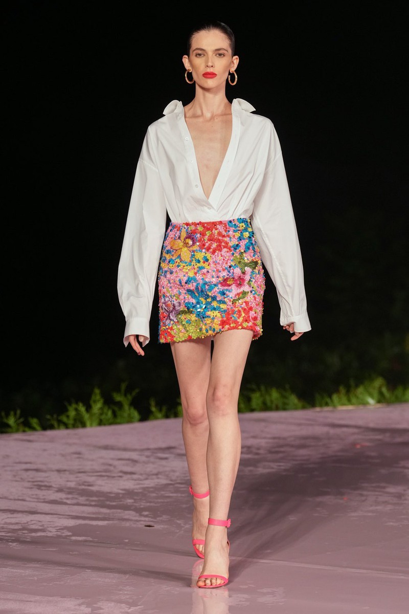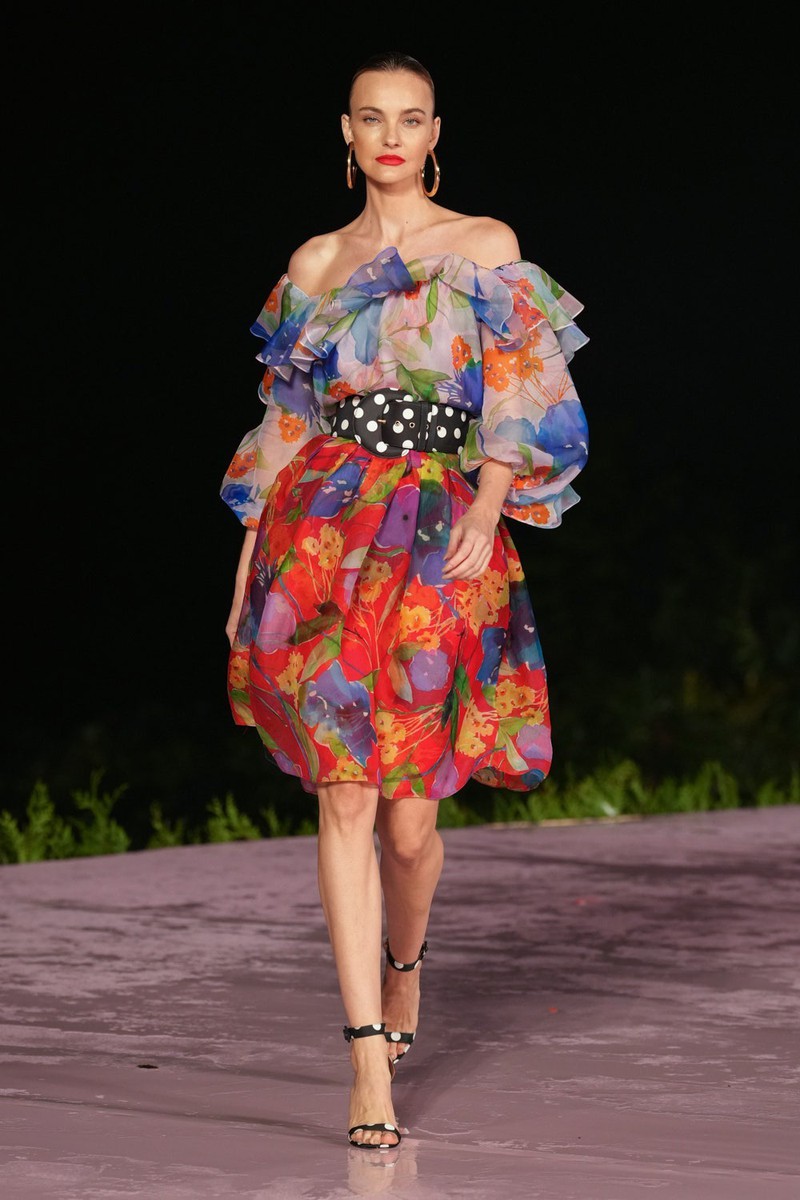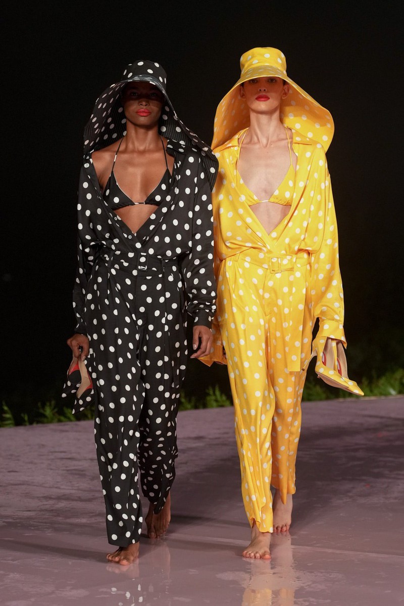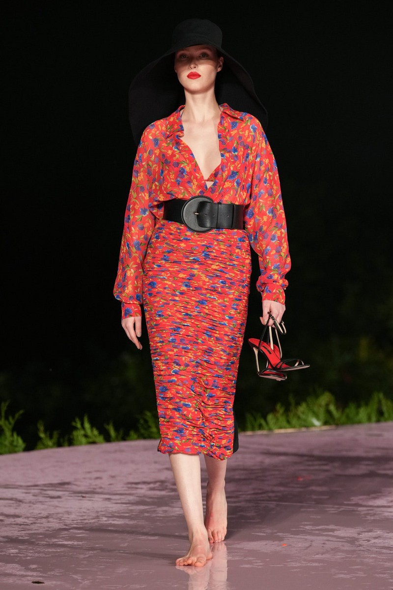 Carolina Herrera设计师首次将他的2024早春度假秀带到了巴西海滨小镇。粉红色的秀台上模特们缓缓走来,大胆、多彩的调色板和丰富的图案印花在巴西这个地方变得更加热情洋溢,亮绿色、芒果黄、大红色的花卉、条纹、圆点图案充满多巴胺的彩色能量,甚至条纹也变得如彩虹般抢眼。