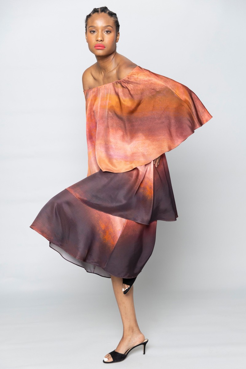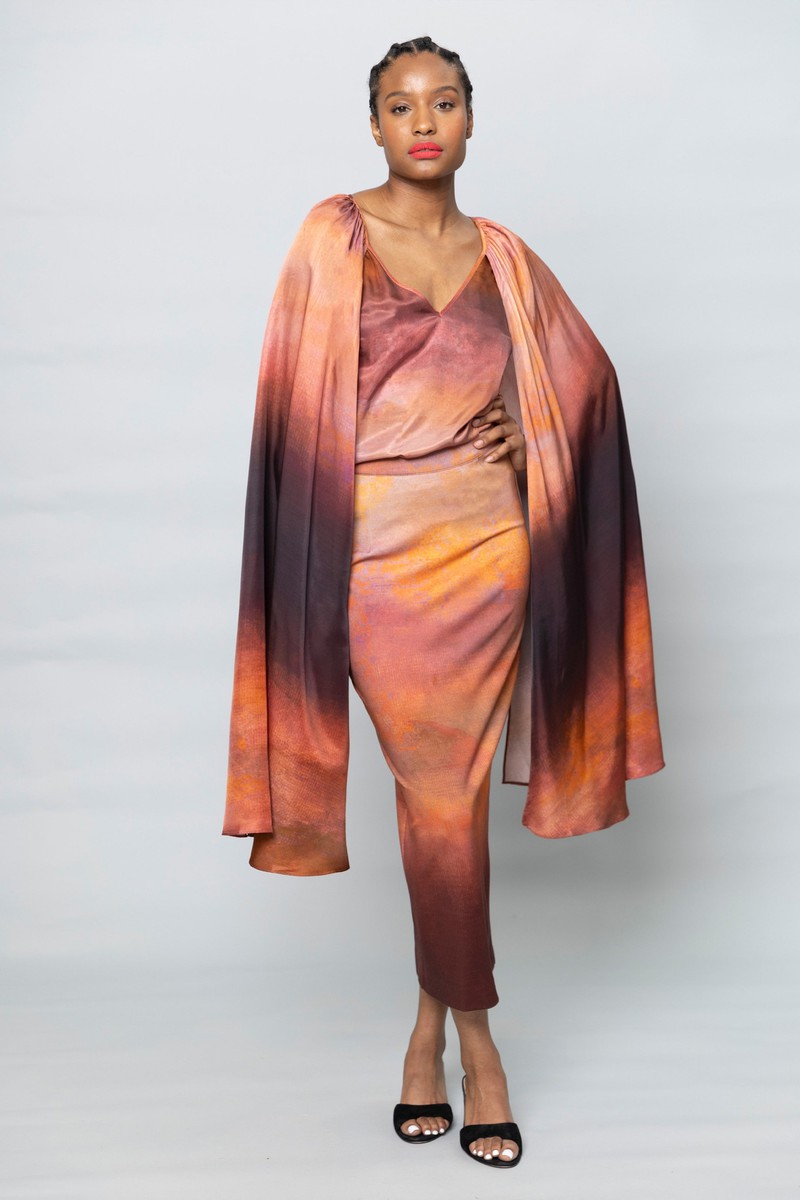 Hope for flowers的服装常常充满乐观精神,用明亮的印花表达自己,花卉和日落印花是 2024年度假系列的主要印花图案,淡紫色背景的花卉印花独特别致,暗色渐变印花带来戏剧性的感觉。