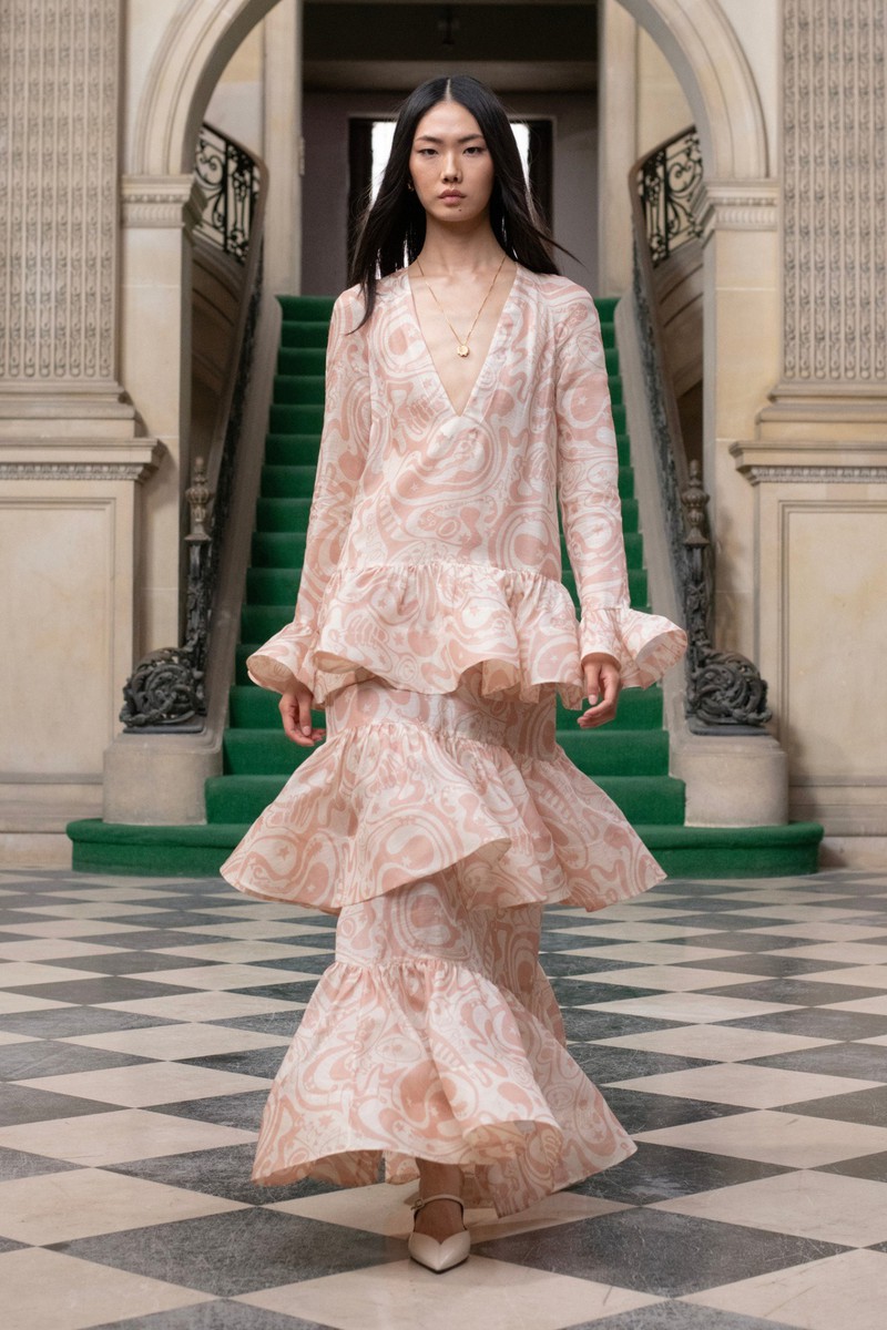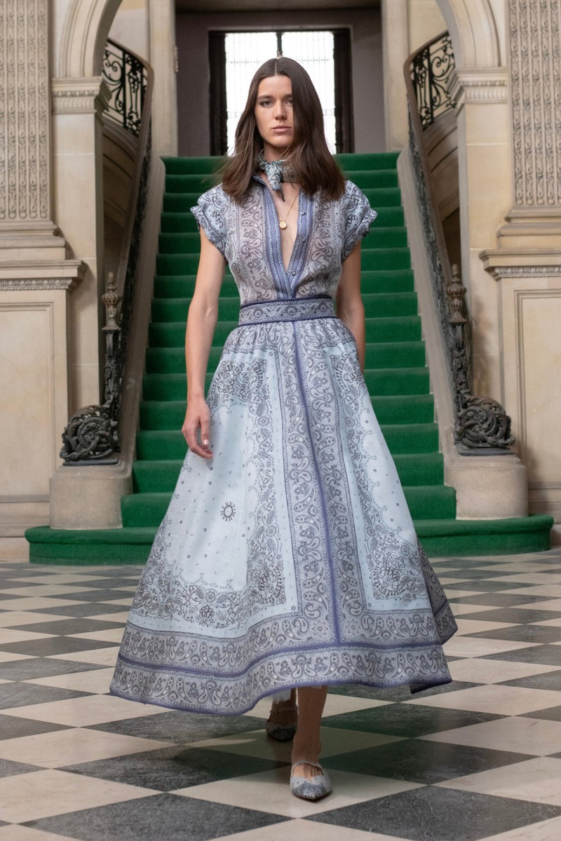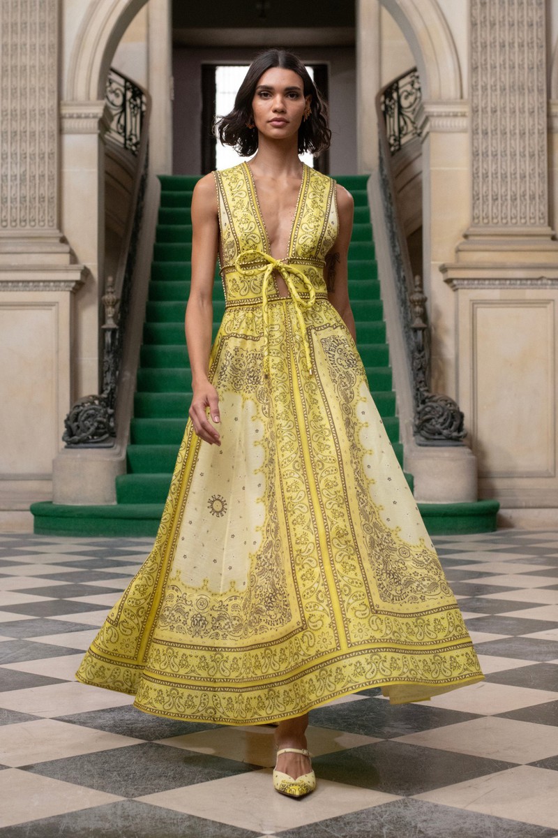 在最近的一次马德里之旅中,Nicky Zimmermann遇到一群人在街上跳舞,给她留下了深刻的印象,并在心中发芽成为Zimmermann 2024年度假系列的灵感。Zimmermann 凭借长 A 字裙、色彩缤纷的花卉和头巾印花捕捉到了 20 世纪 50 年代舞蹈的精神。半透明丝质、亚麻欧根纱面料选择,为女性化、结构性的廓形带来轻盈感。