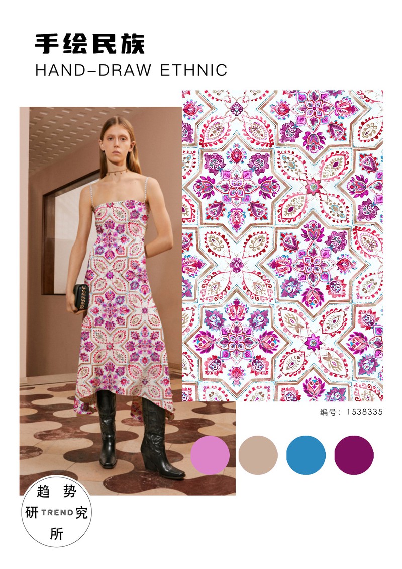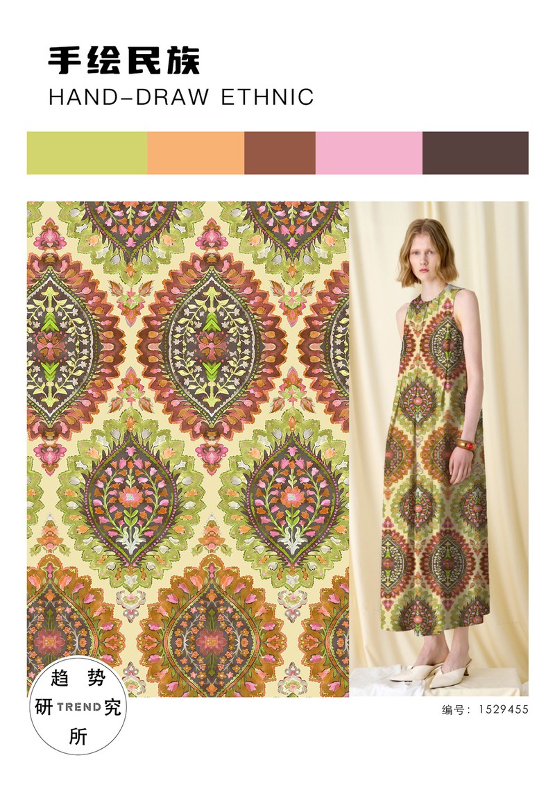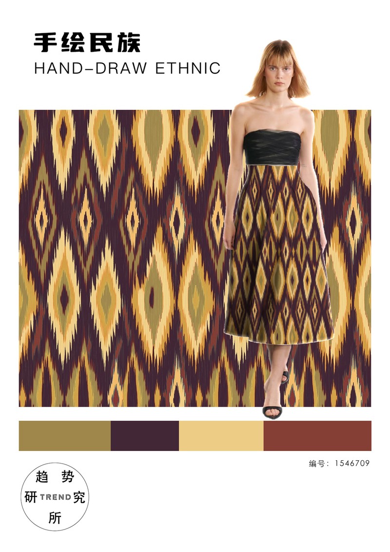 民族图案在时尚界一直备受欢迎,如图腾、ikat、batik、几何等等,它们融合了传统与现代的元素,带来了独特的艺术魅力。在2024早春品牌发布的新品中,我们可以看见手工质感的变得更加重要,手绘的质感和线条,与现代数字化图案形成鲜明对比。这些图案呈现出鲜明色彩,以其独特的艺术魅力传达不同文化的活力和多样性。手绘感觉的图案又往往带有一种活泼的生命力,为衣服注入了活力和情感。