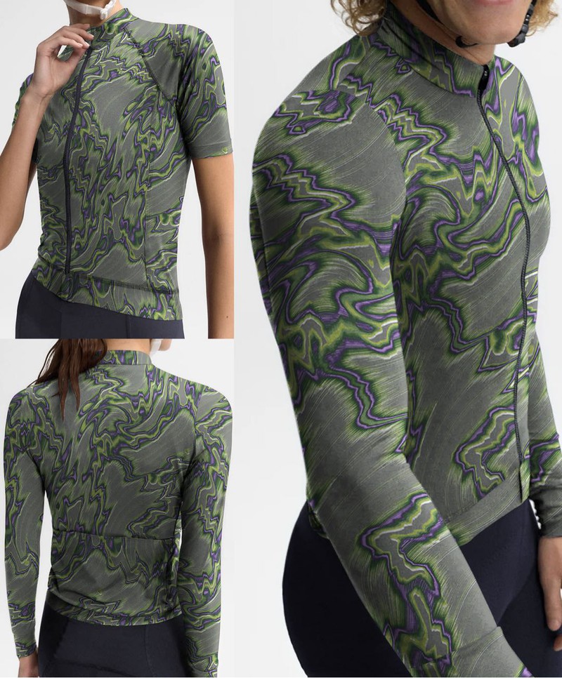 抽象肌理图案|骑行服印花效果以闪电形态为基础,结合波浪动势表