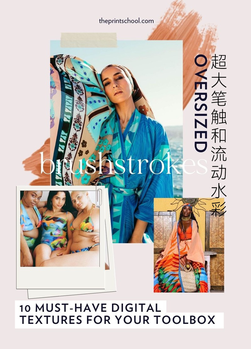 这个风格的纹理非常适合在纯色区域添加笔触,增加层次感,缤纷的色彩尤其适合泳装。
