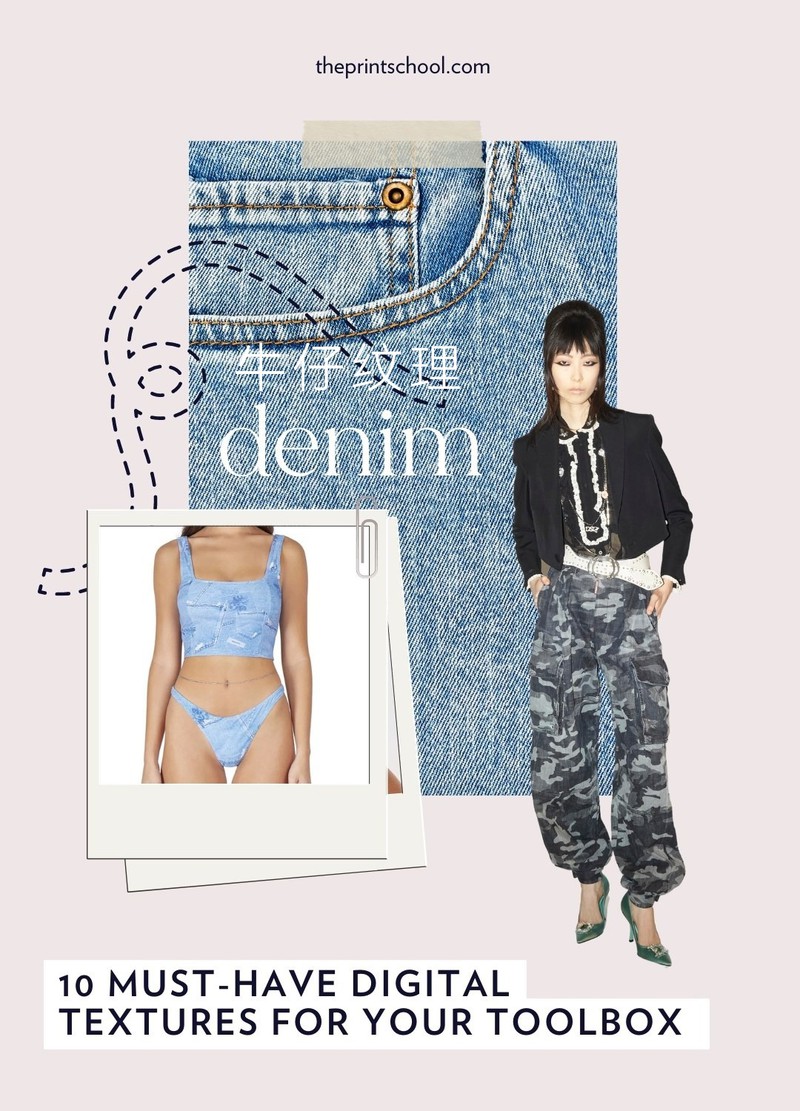 由于90年代时尚的复兴,我们看到了很多牛仔布的出现,如果将它用作图案设计的背景,是一个很好的创意。