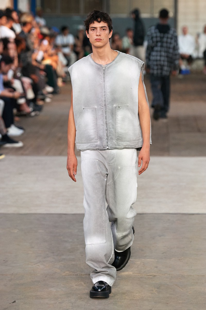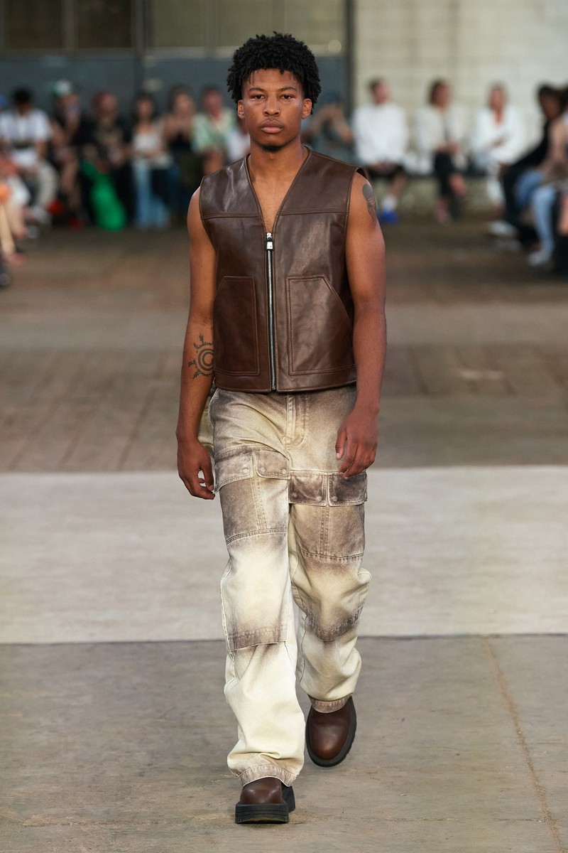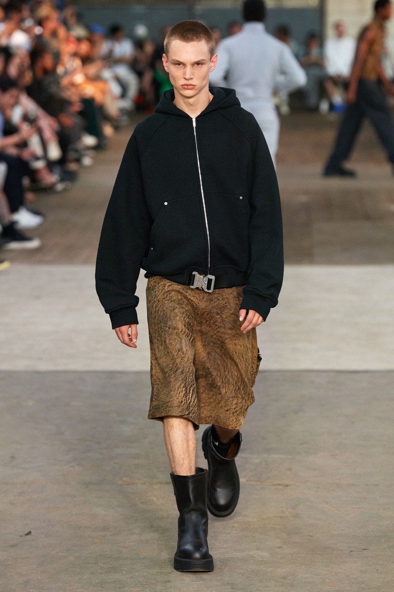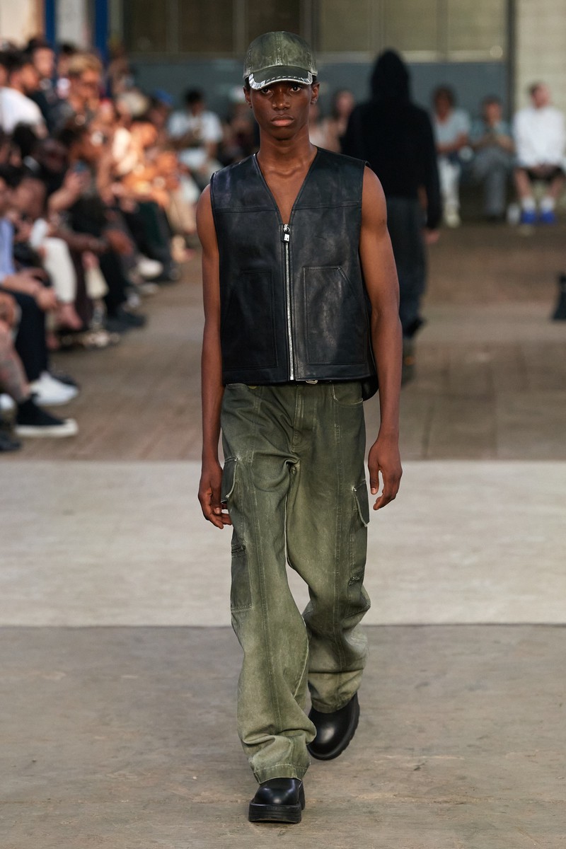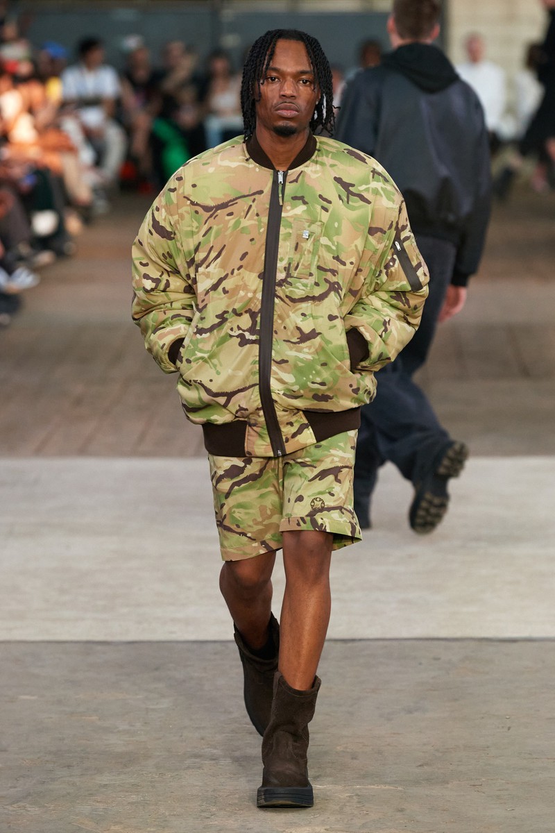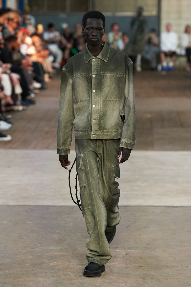 迷彩、牛仔喷墨、动物纹理是2024春夏男装Alyx的主要印花,色彩上使用一些蓝色、橄榄绿和卡其黄黄,整体休闲轻松。