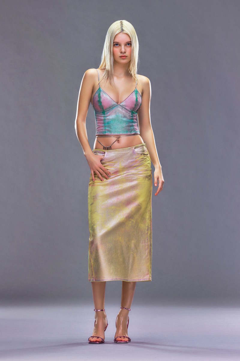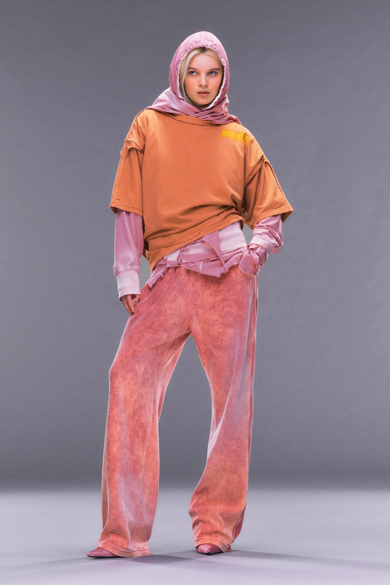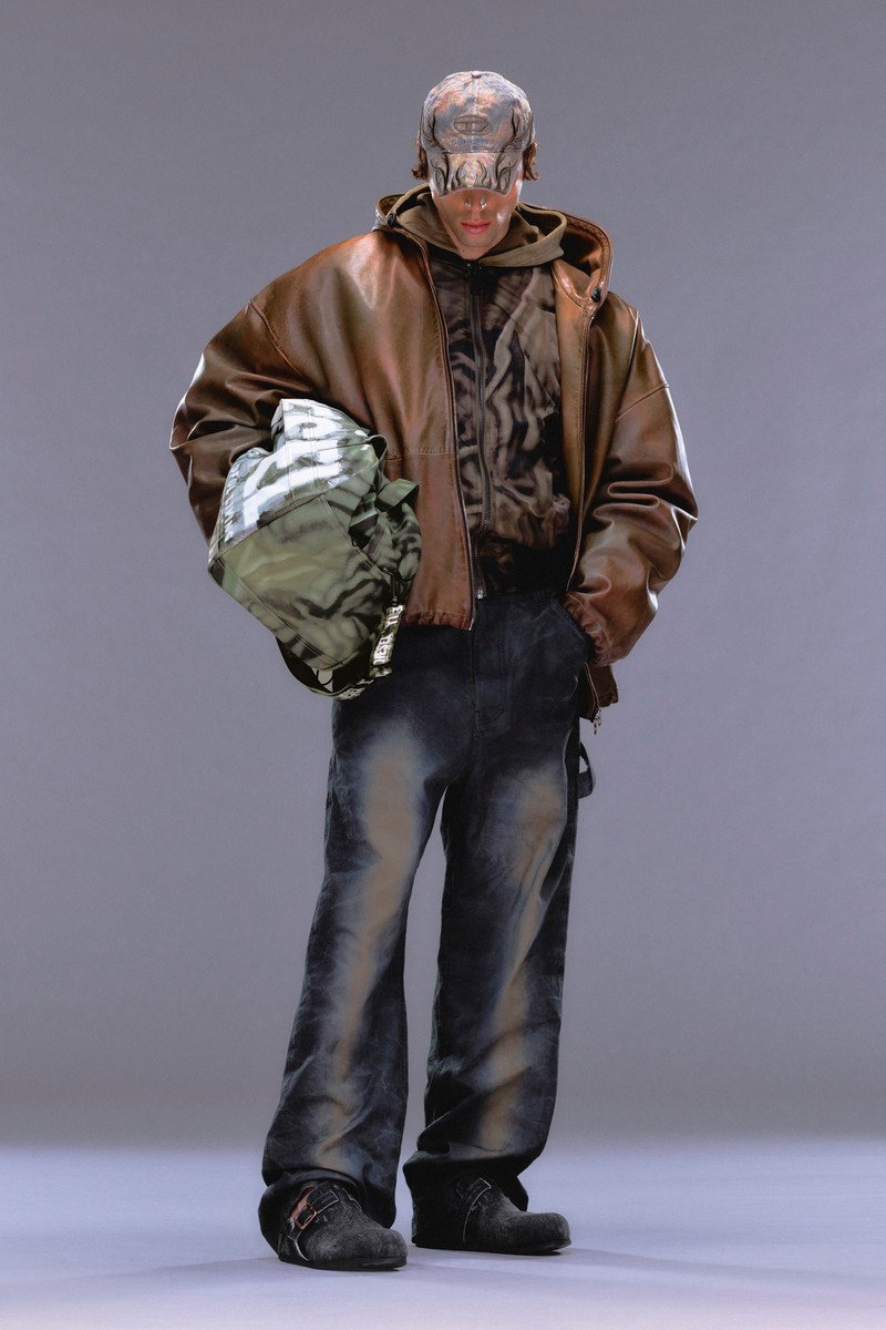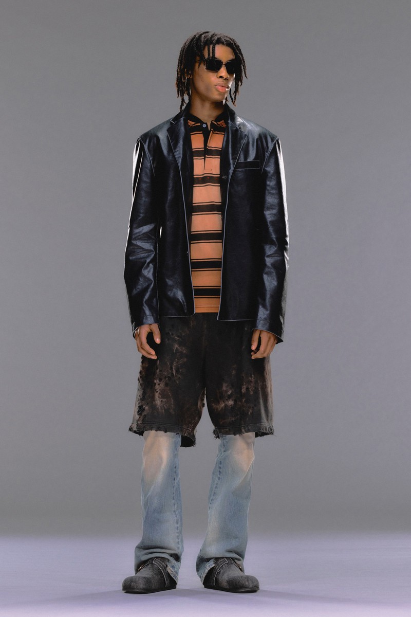 牛仔是运动休闲品牌Diesel的重要设计要素,在2024早春系列中,我们再一次看到了牛仔布的新设计,不仅可以切割拼贴,也可以在上面印上喷墨形成的肌理图案,再一次证明抽象形式的图案在运动装中的适用度。