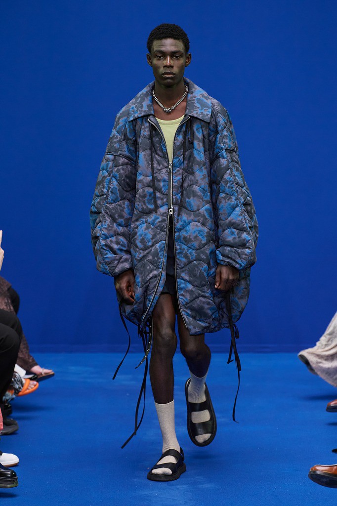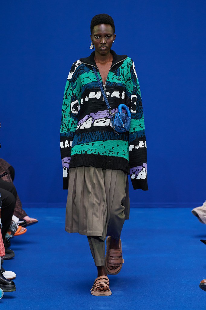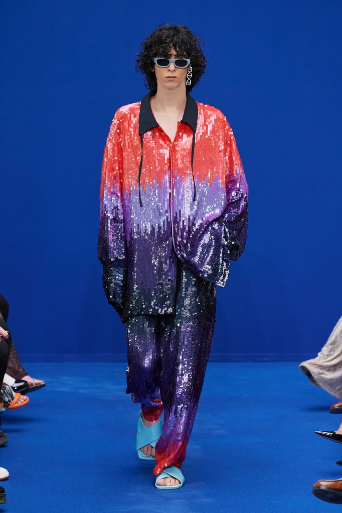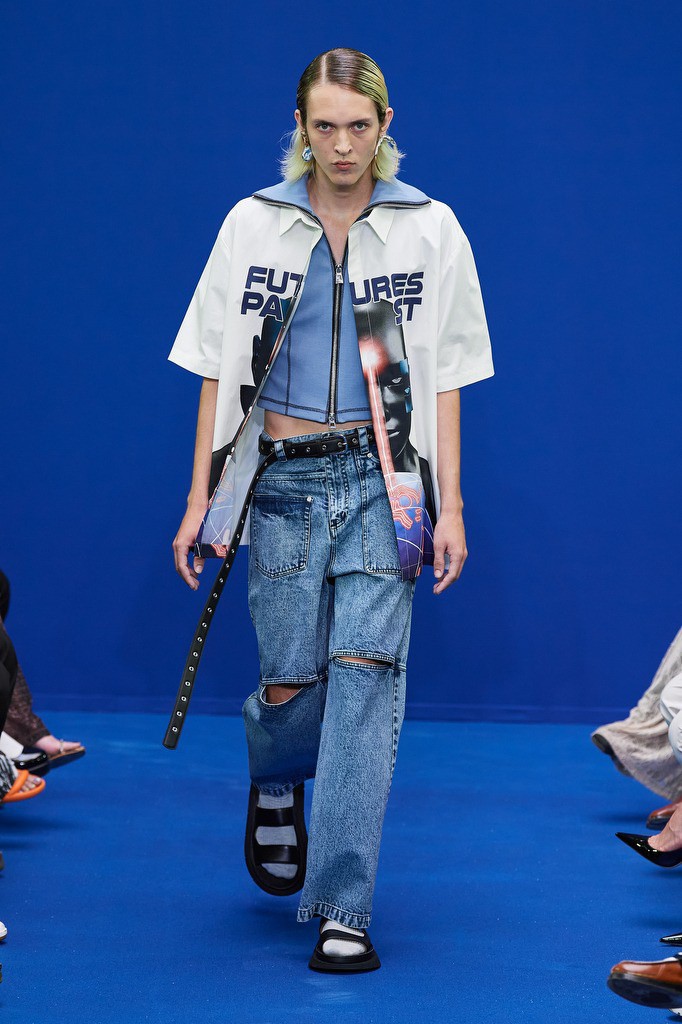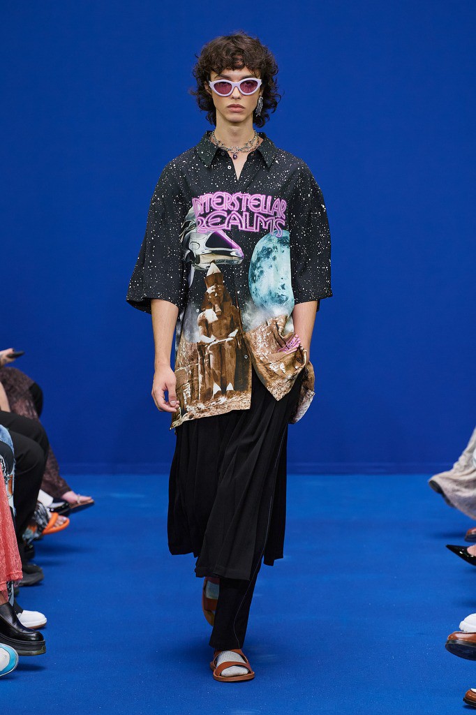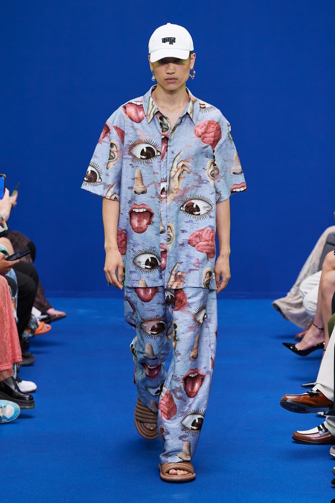 Dhruv Kapoor已经成为科幻、电影和时尚主题的代名词,宇宙主题的图案元素也一直以来都有,但是Dhruv Kapoor 在2024春夏男装上,将宇宙主题与科幻想象力结合起来,多了更多潮牌的玩味风格。印花从 20 世纪 70 年代的科学印刷品中汲取灵感,以字母组合的舌头、手和眼睛图形拼贴组合成新的图案设计,打造属于自己的科幻宇宙。