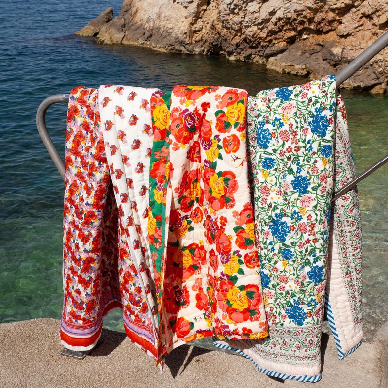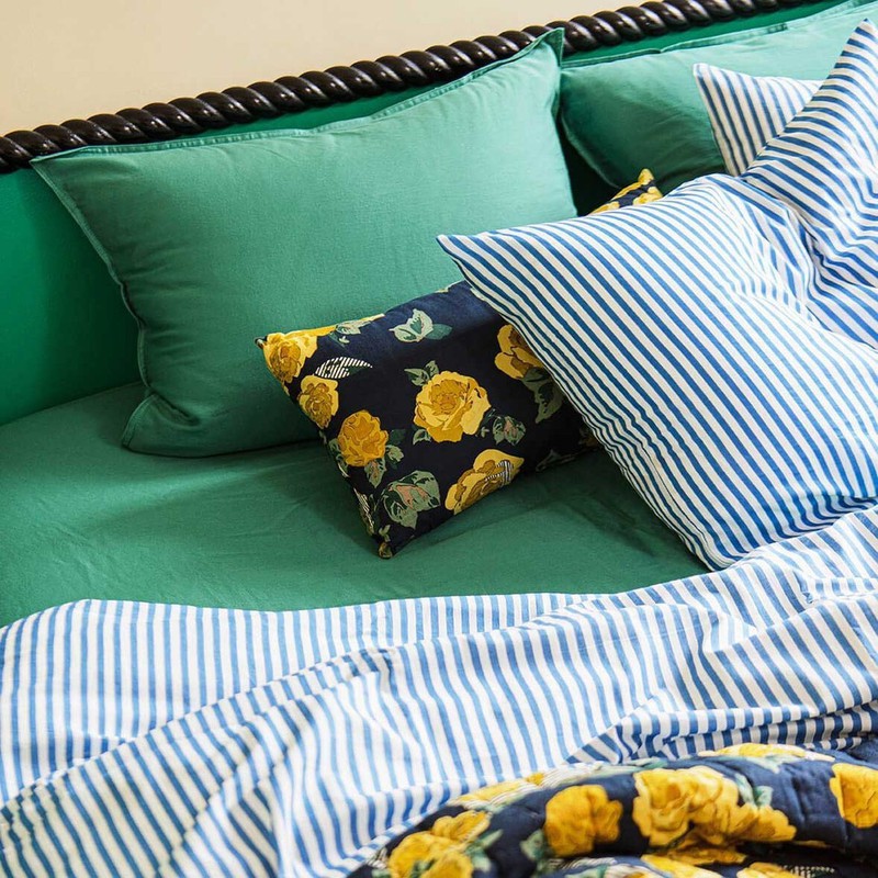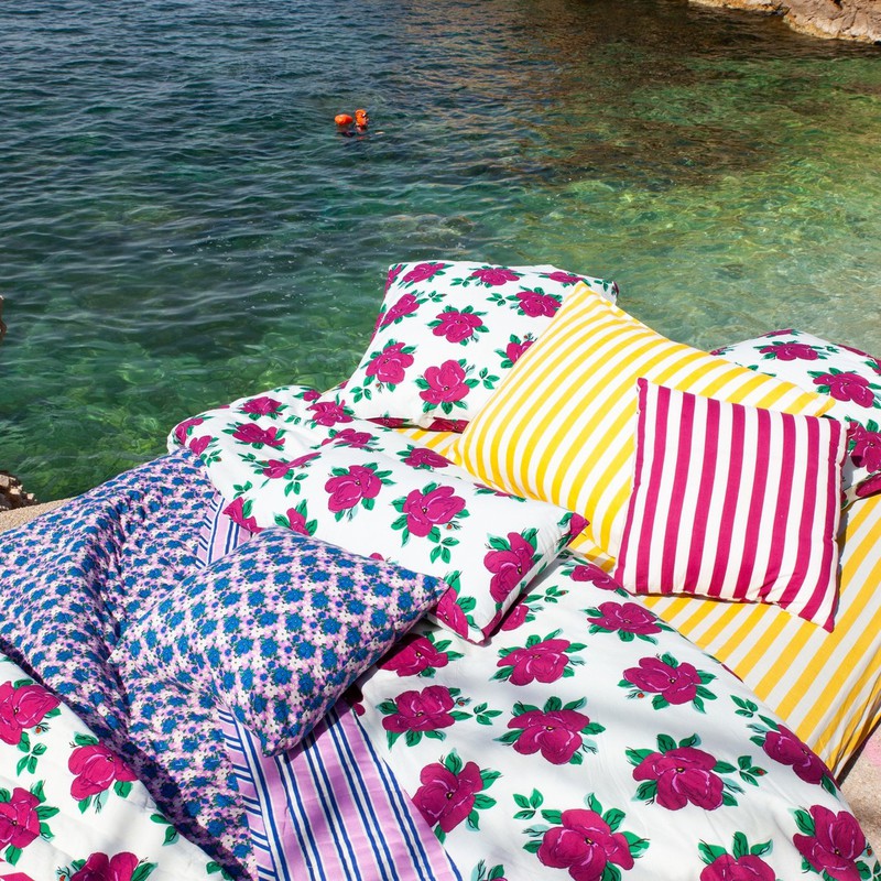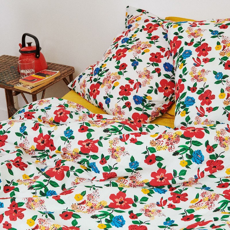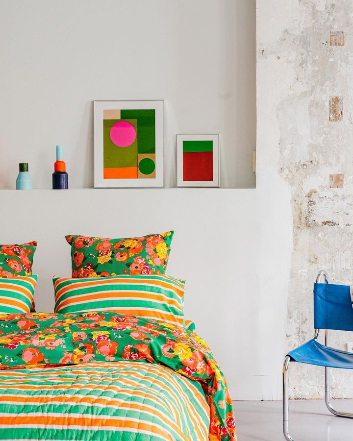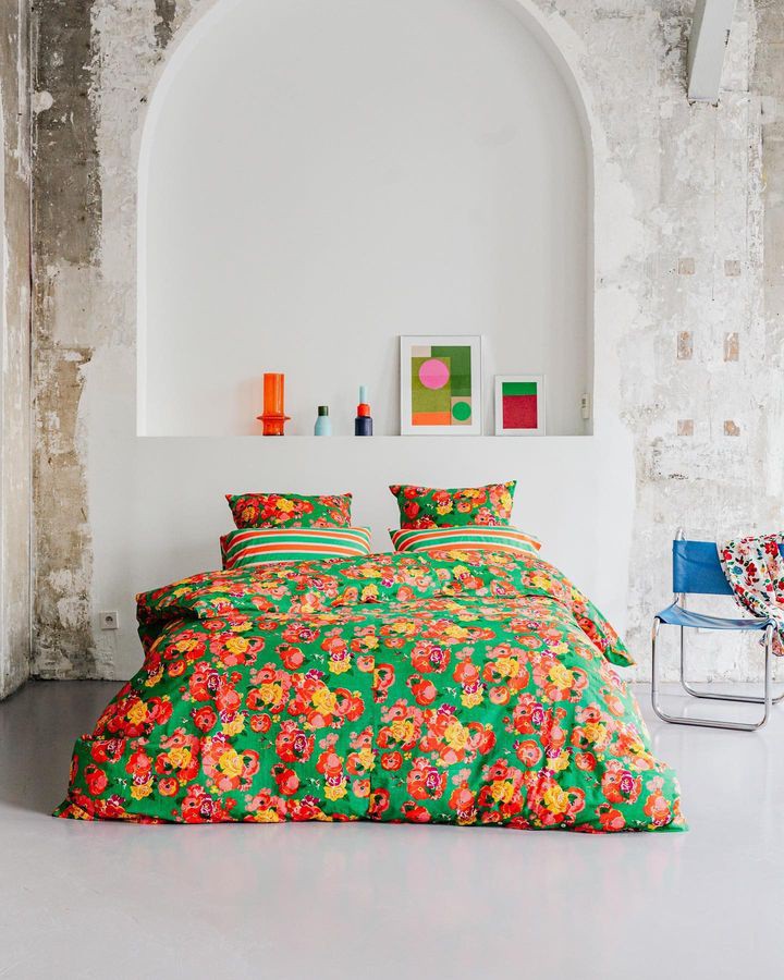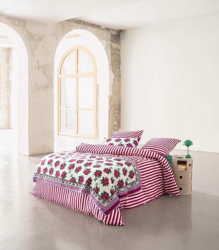 在多巴胺潮流的影响下,品牌们想象通过色彩缤纷的印花、欢快的色彩组合来改变卧室氛围。看看这些品牌多巴胺印花的床品有没有给你带来灵感!Lucas du Tertre通过一系列色彩缤纷的印花床单弥合了印度和法国、传统和现代化之间的差距,其图案在巴黎的作坊绘制,并根据传统的技术在印度印刷和编织。他们的花朵,几何和动物印花图案经过叠加和混合,运用到床品上。