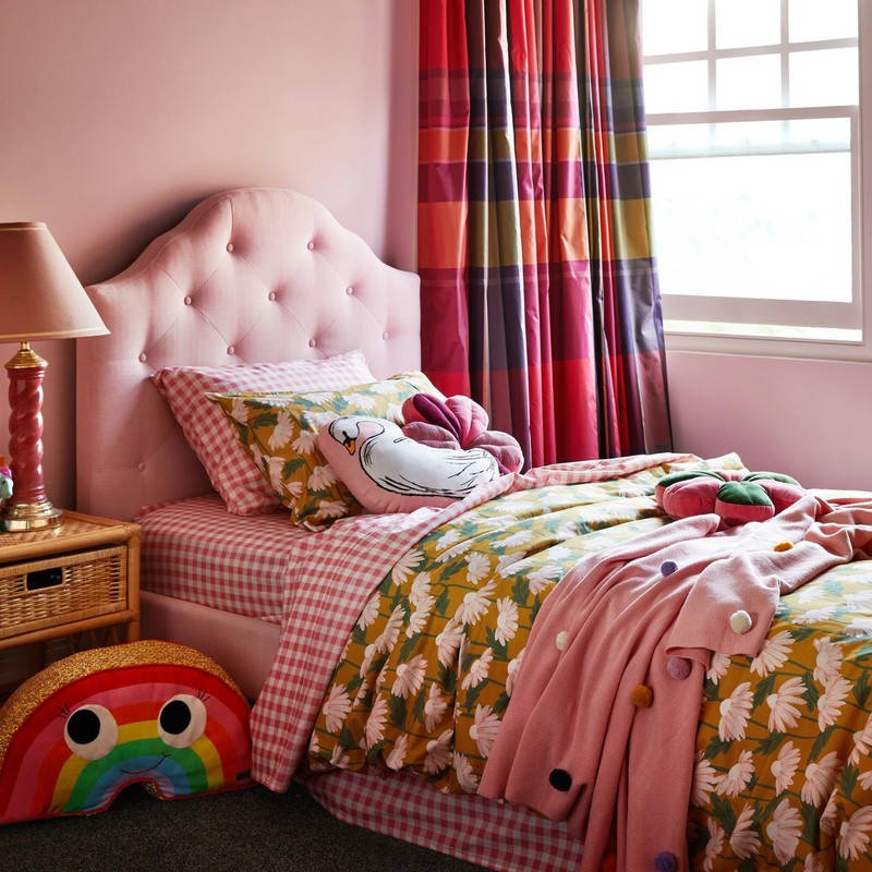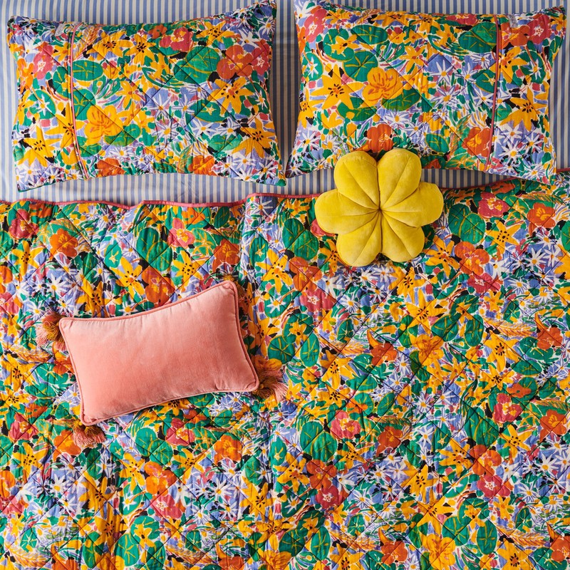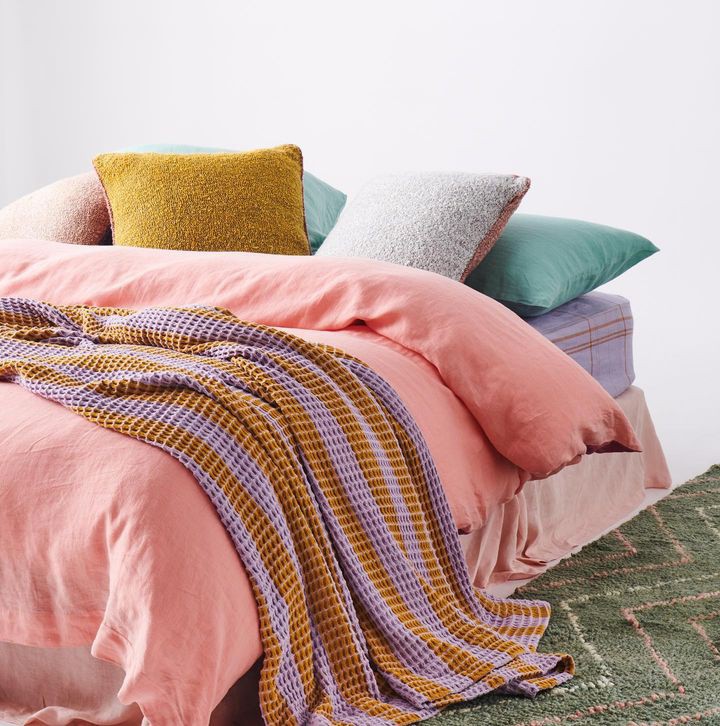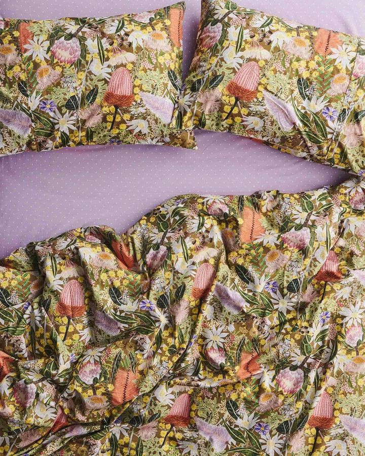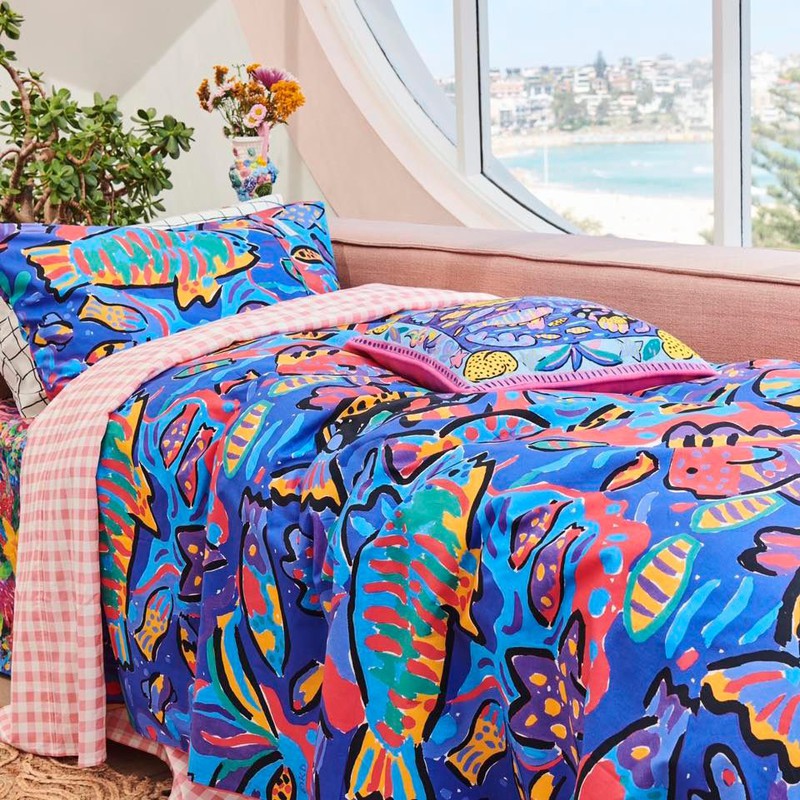 在多巴胺潮流的影响下,品牌们想象通过色彩缤纷的印花、欢快的色彩组合来改变卧室氛围。看看这些品牌多巴胺印花的床品有没有给你带来灵感! Kip&Co由Kate,Hayley和Alex于2012年在墨尔本创立,诞生于现实生活中的姐妹友谊,以及对色彩和图案创造的共同热爱。自由奔放的家用纺织品设计风格,一直是该品牌的核心,设计中融合了创造力,乐趣,艺术,文化和传统工艺。