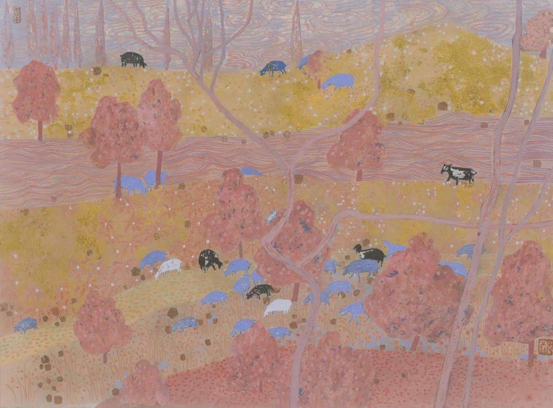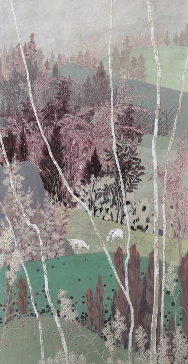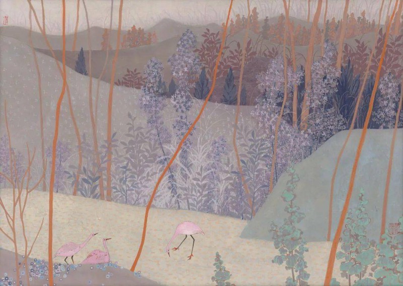 艺术家张存玫用画笔创造了一个极致静谧的工笔画艺术世界。她 把对艺术、对生命的思考融入画笔,用细腻的笔触与丰富多变的色调描绘出一幅幅诗意山水,给予观者最有力的温柔慰藉,让画作透出一股东方绘画中独有的古意与诗情。