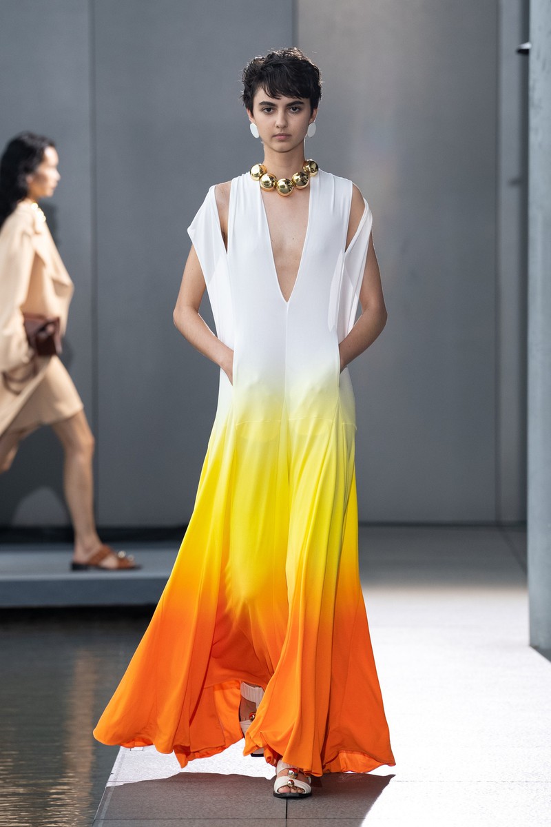 Harunobu Murata 2024春夏的灵感来自于美国摄影师 Slim Aarons 和《请以你的名字呼唤我》 导演 Luca Guadagnino 的作品,以及他们捕捉夏天慵懒感性情绪的方式。该品牌采用了全新的渐变染色工艺,产生了一系列令人印象深刻的宝石色连衣裙,毫无疑问,这些渐变色的连衣裙将是春天的趋势。