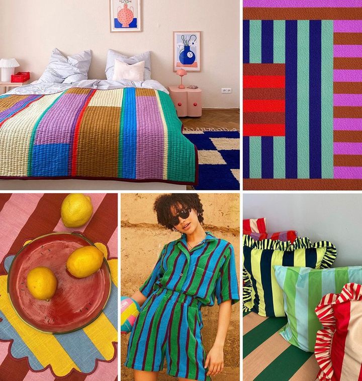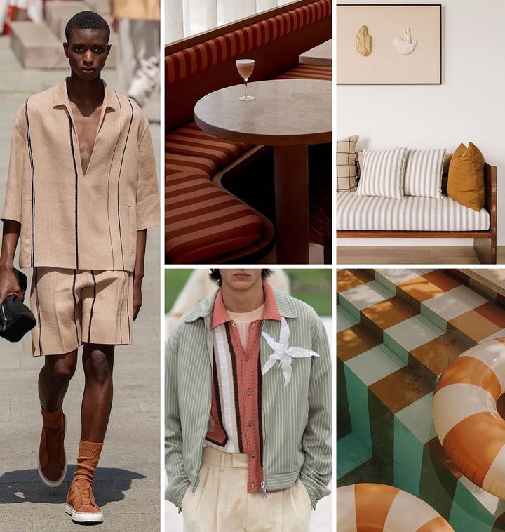 今年欧洲夏季氛围激发的甜蜜生活和番茄女孩的潮流,使普普通通的条纹回归视野,成为未来的流行图案,多彩的颜色是关键,冰激凌色调或醒目的多巴胺条纹吸引目光。复古 90 年代的运动条纹和复古美学则适合家居用品。