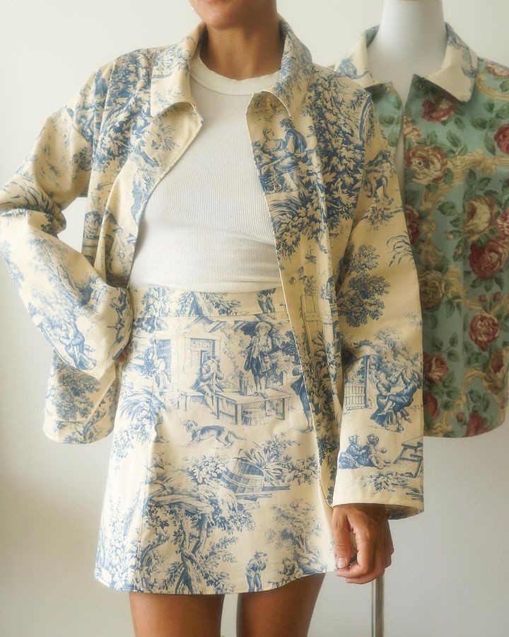 Trinidad为复古花纹着迷,尤其是单色调素描的朱伊纹,这也成为她的手作品牌The Epoch的特色,吸引了一大群同样喜欢这些复古衣服的消费者。