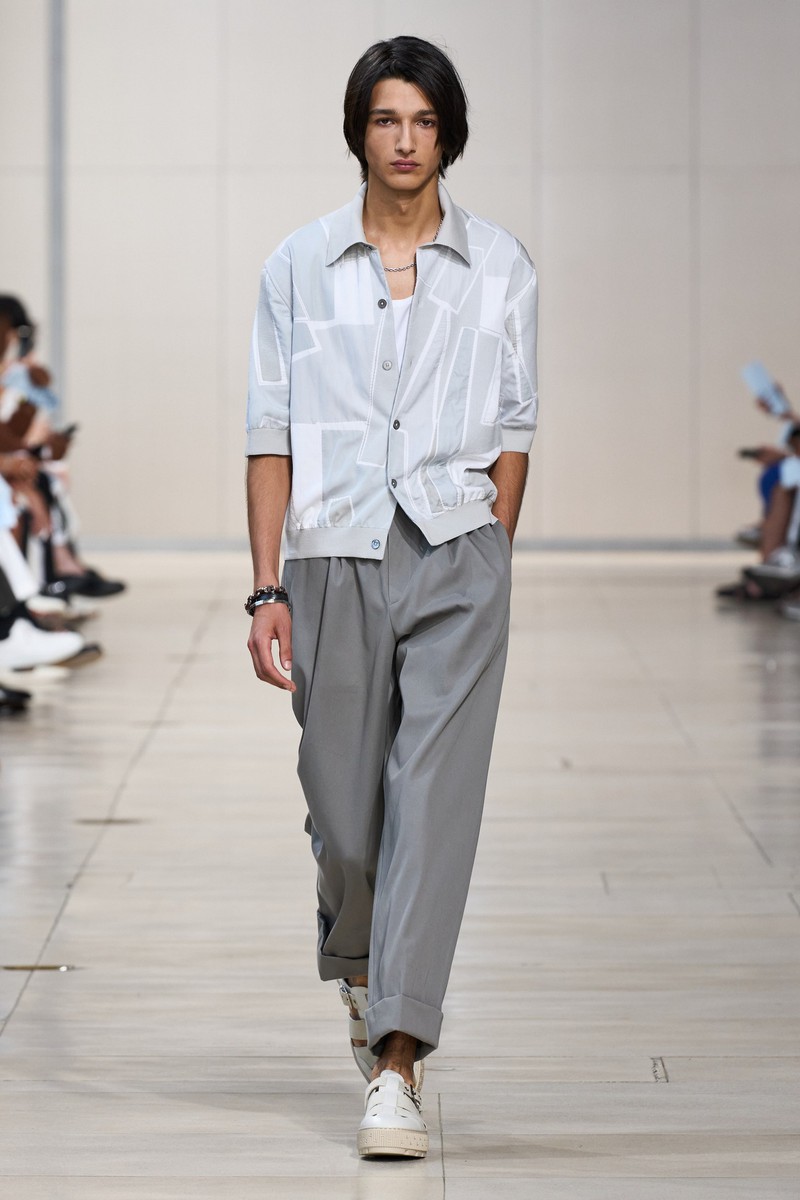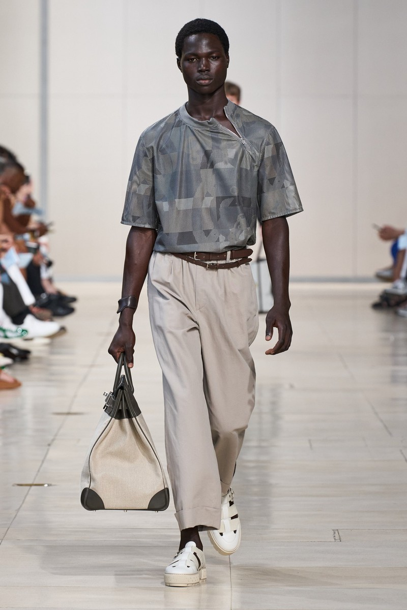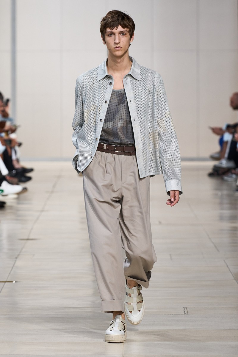 在 Véronique Nichanian 的领导下,爱马仕Hermes男装始终是高品味的典范。2024春夏系列为极端炎热天气而设计,采用轻盈的体积和轻质面料,使穿着者的皮肤能够呼吸。高级感的色调让让衬衫、夹克外套的几何、宫廷风图案精致又优雅。