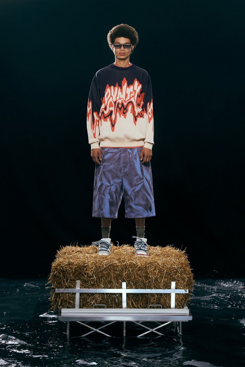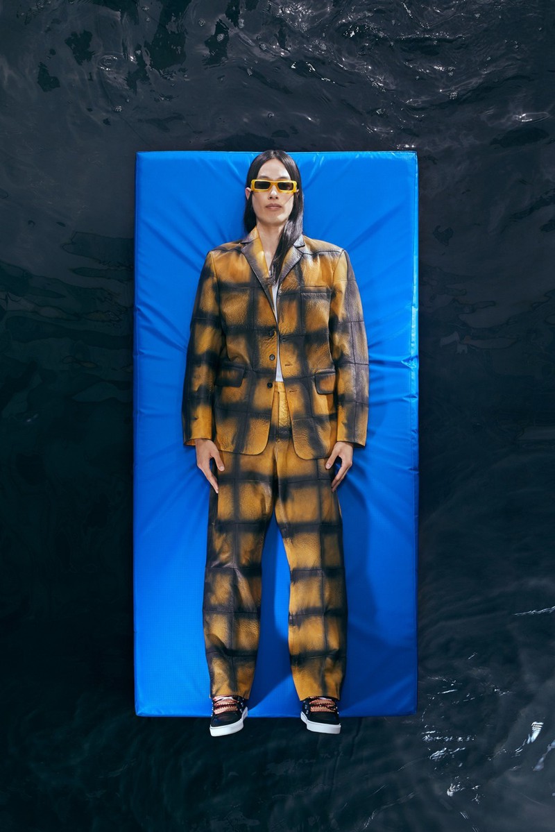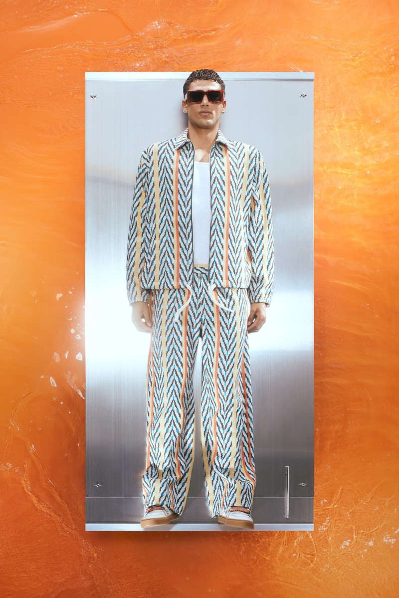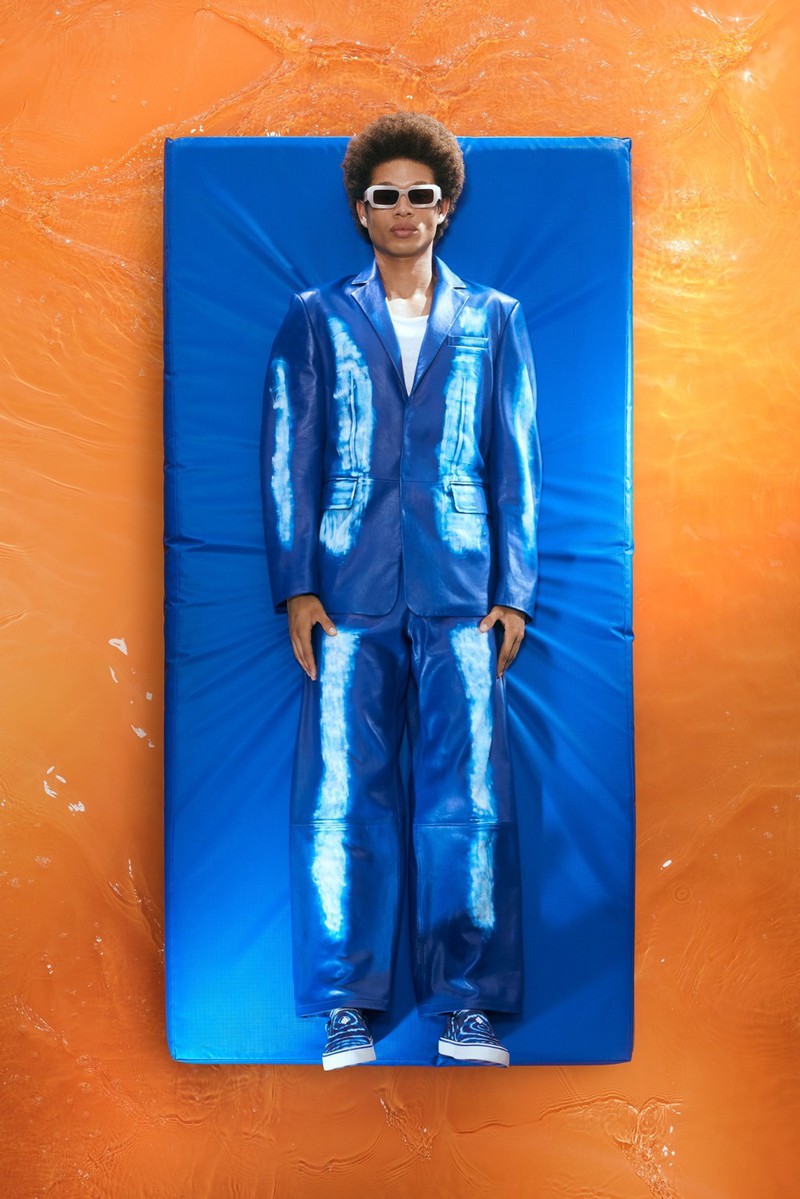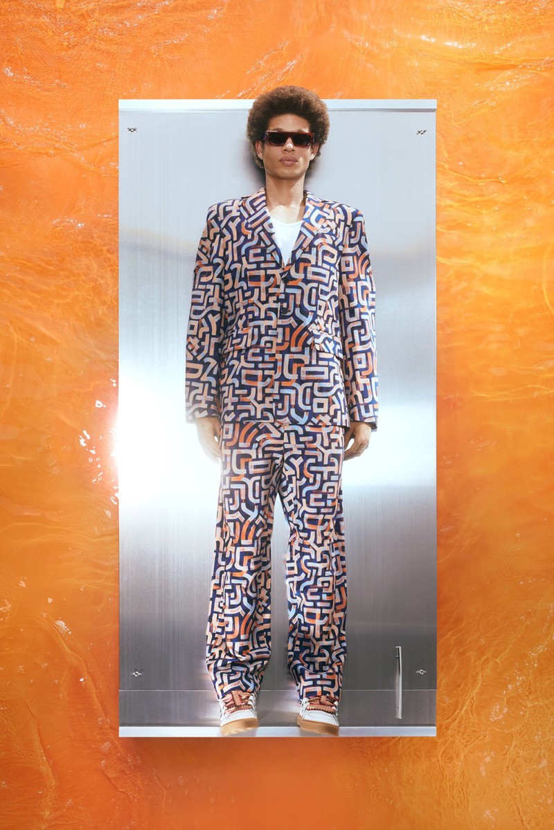 对于了解当代街头服饰从小众追求发展到当今时代主要流行的人来说,Marcelo Burlon 既是一个关键人物,也是一个品牌。2024春夏系列大部分都是从头到脚的造型。不完全剪裁。染色人造牛仔皮革和一些强烈图案的搭配,焦橙色、靛蓝印花或驼色的实用背心和裤子,可以说是更前卫的单品,街头服饰正在成长,但朝着自己的方向发展。