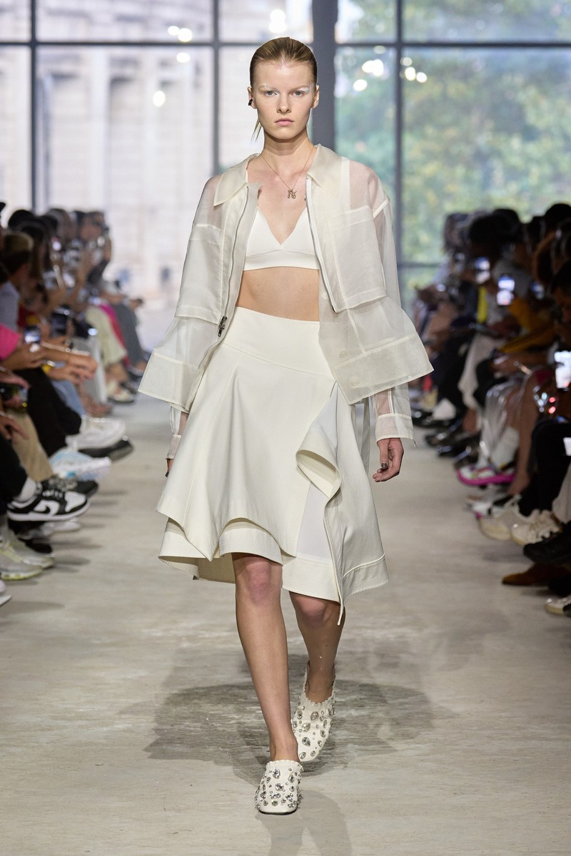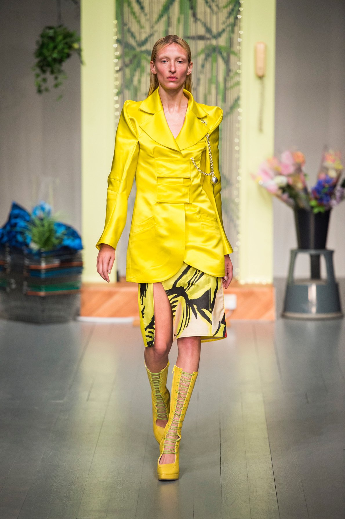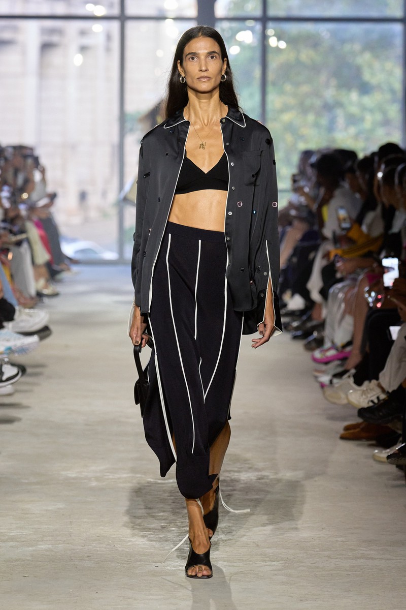 带有特色的美式运动装,它以时髦的超阔腿卡其裤和非常规方式剪裁的牛仔夹克出现,轻盈的围巾图案连衣裙,图案灵感源自纽约建筑细节,还有大量的长裙,搭配繁茂花卉印花。