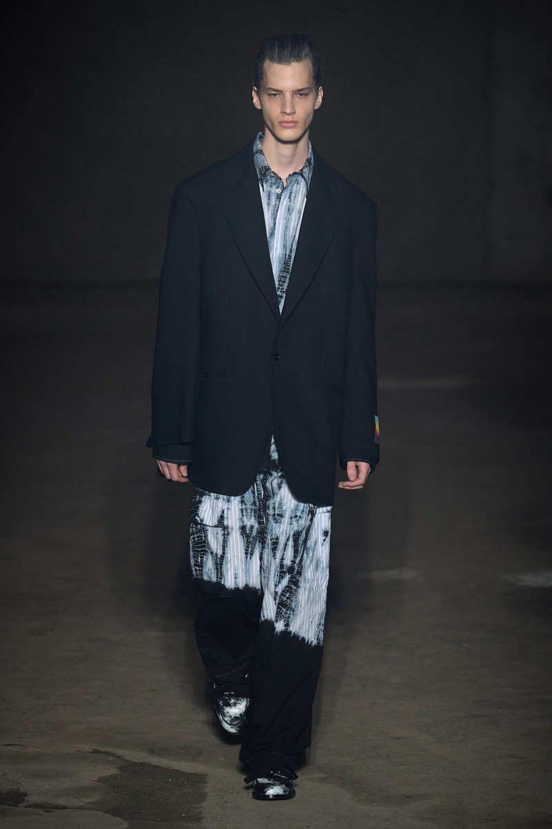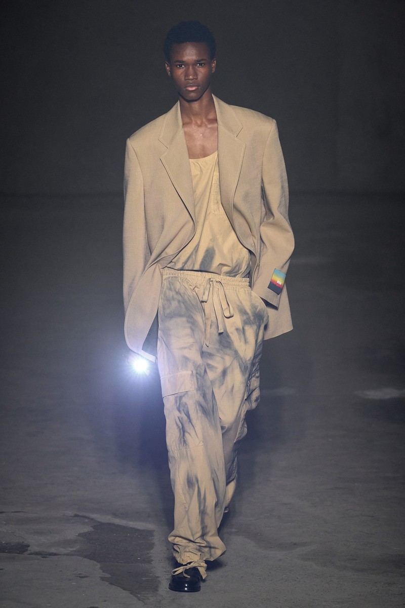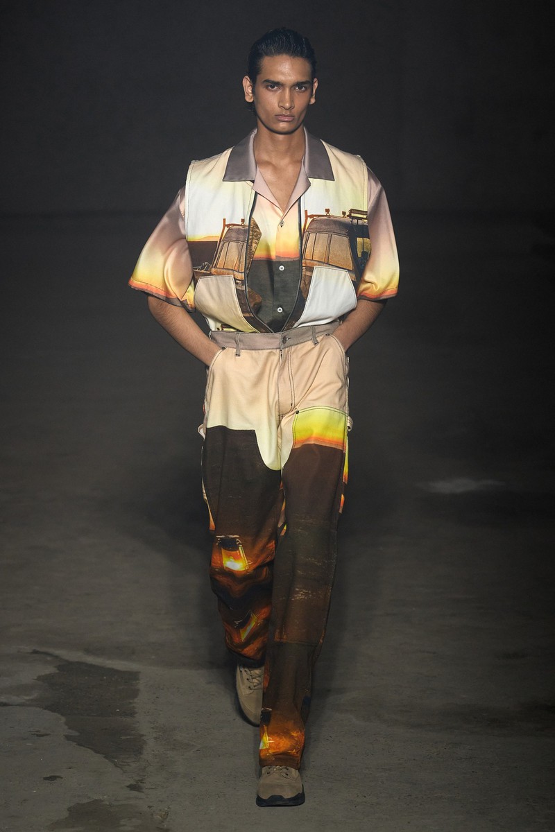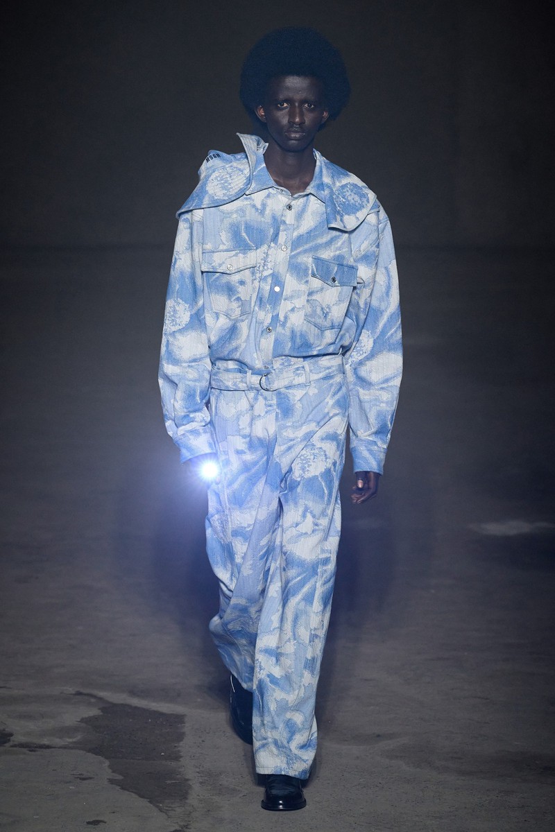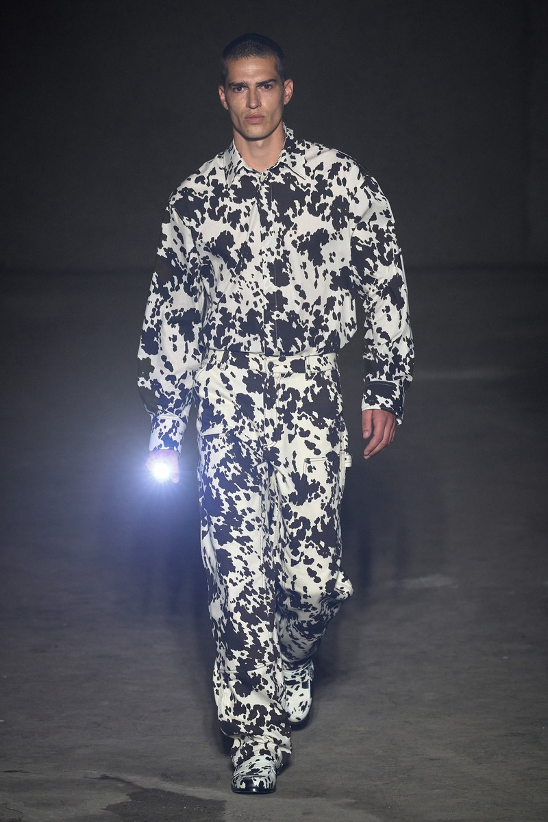 最近的一次坦桑尼亚之旅给 Massimo Giorgetti 留下了深刻的印象;他用 iPhone 拍摄的黎明、日落和天空的照片,色彩如此强烈,仿佛是人工智能生成的,这些照片被印在他的2024春季男装上。紫丁香色、淡蓝色、沙米色和平静白色的稳重色调,与带着这些艺术气息的图案搭配在一起。