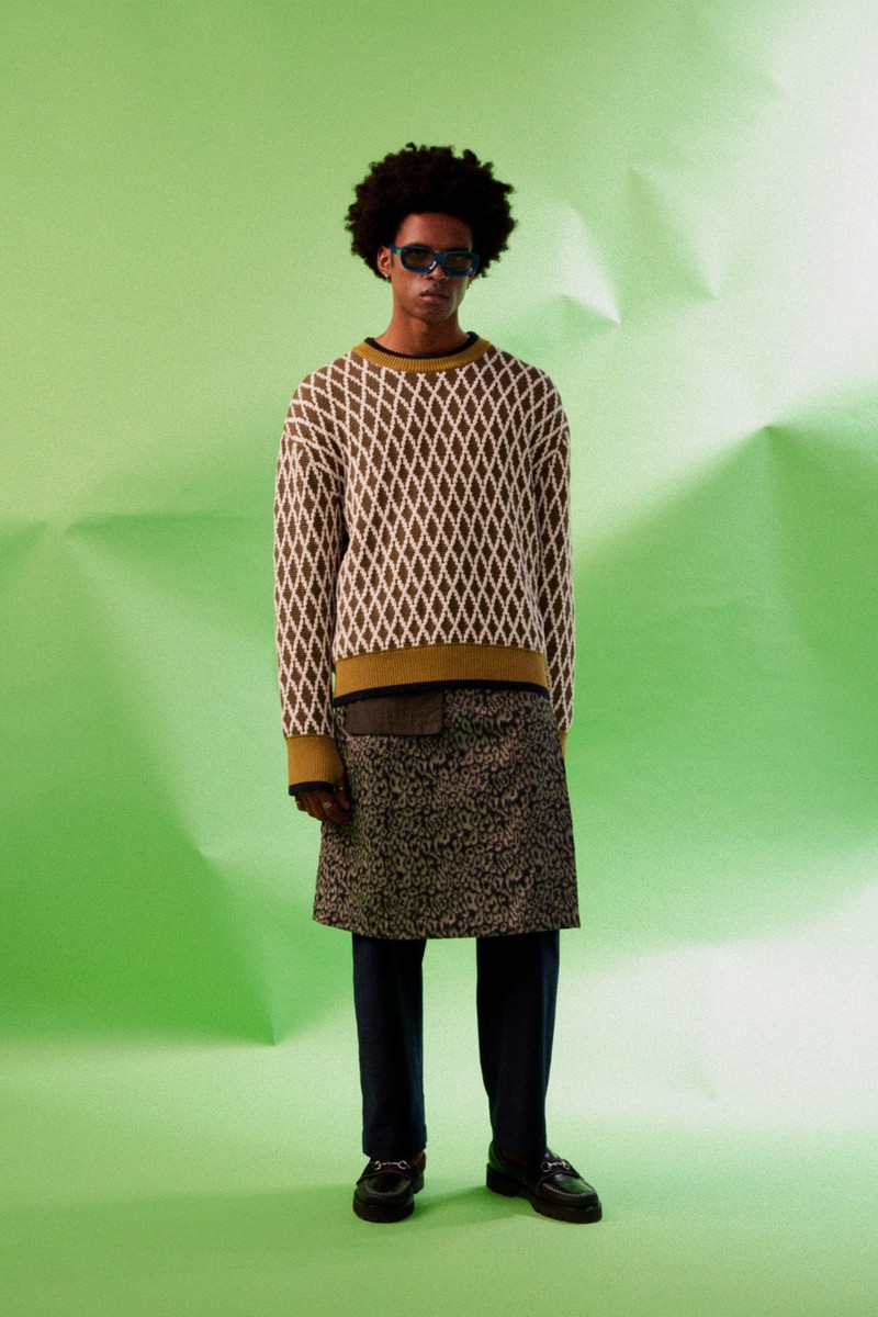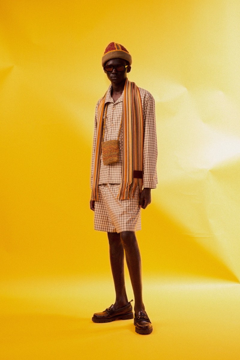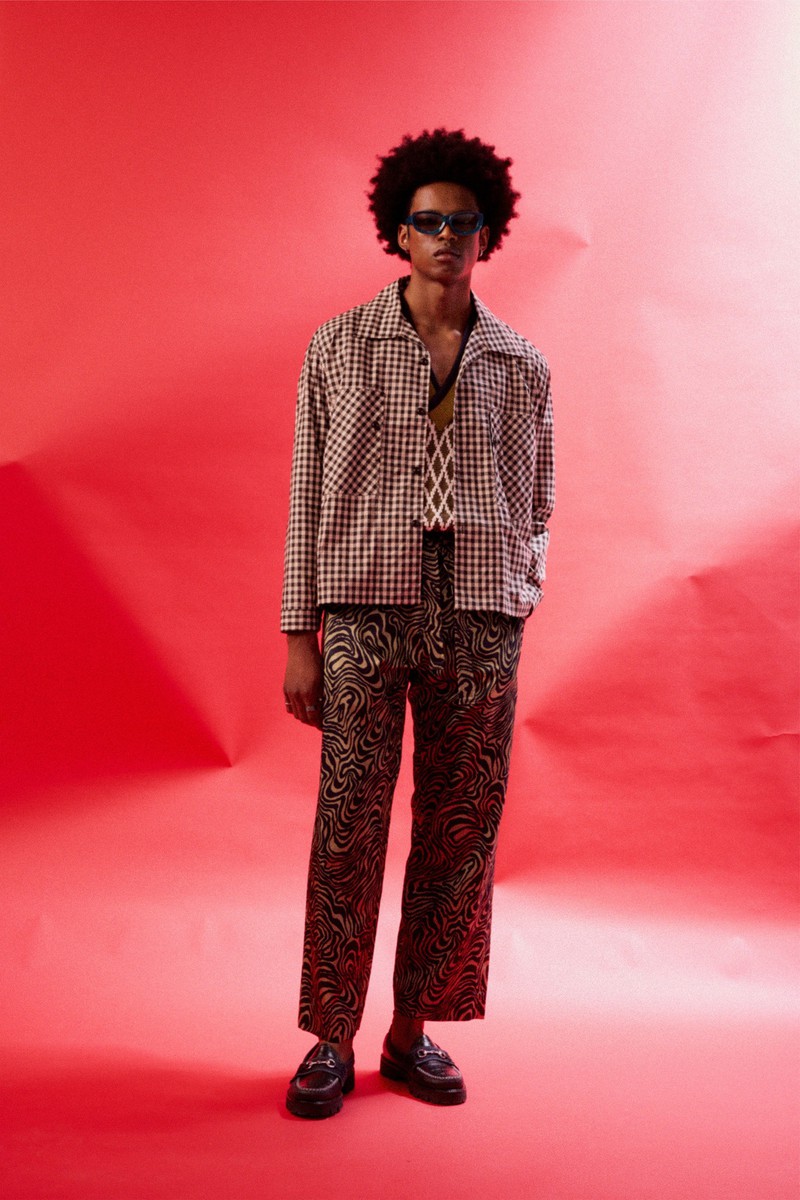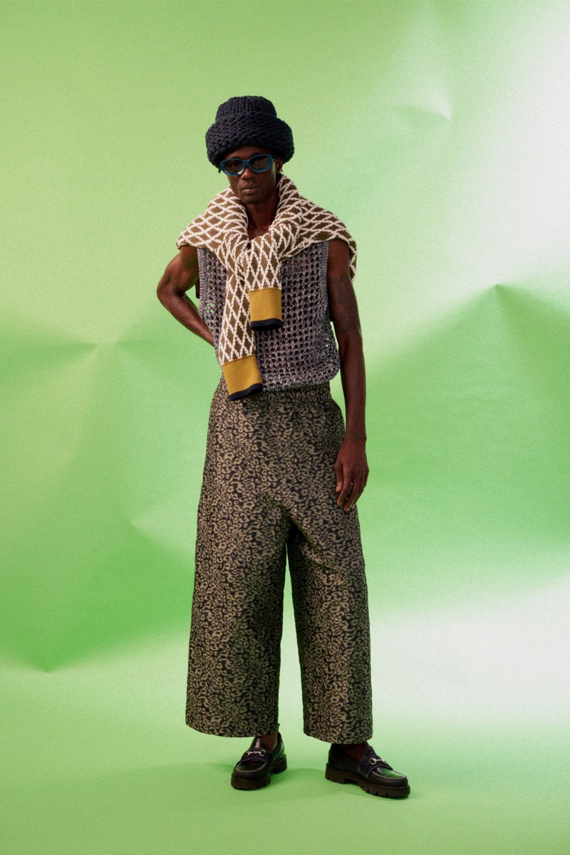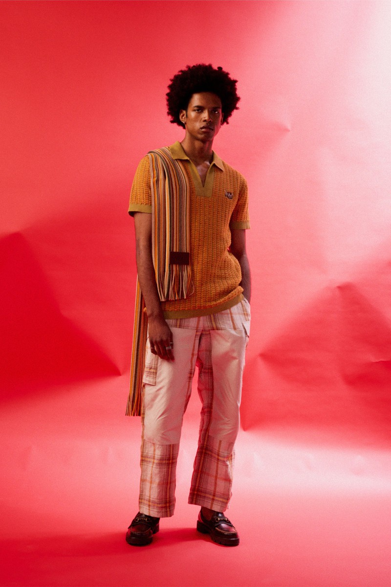 尽管涉及的角色范围广泛,但Nicholas Daley2024春夏最终的系列一如既往地连贯一致,令人印象深刻。在这里,过去的元素被融入到当下流行的服装中:拉链式针织运动夹克、宽领处饰有运动条纹、迷人的睡衣式格子。