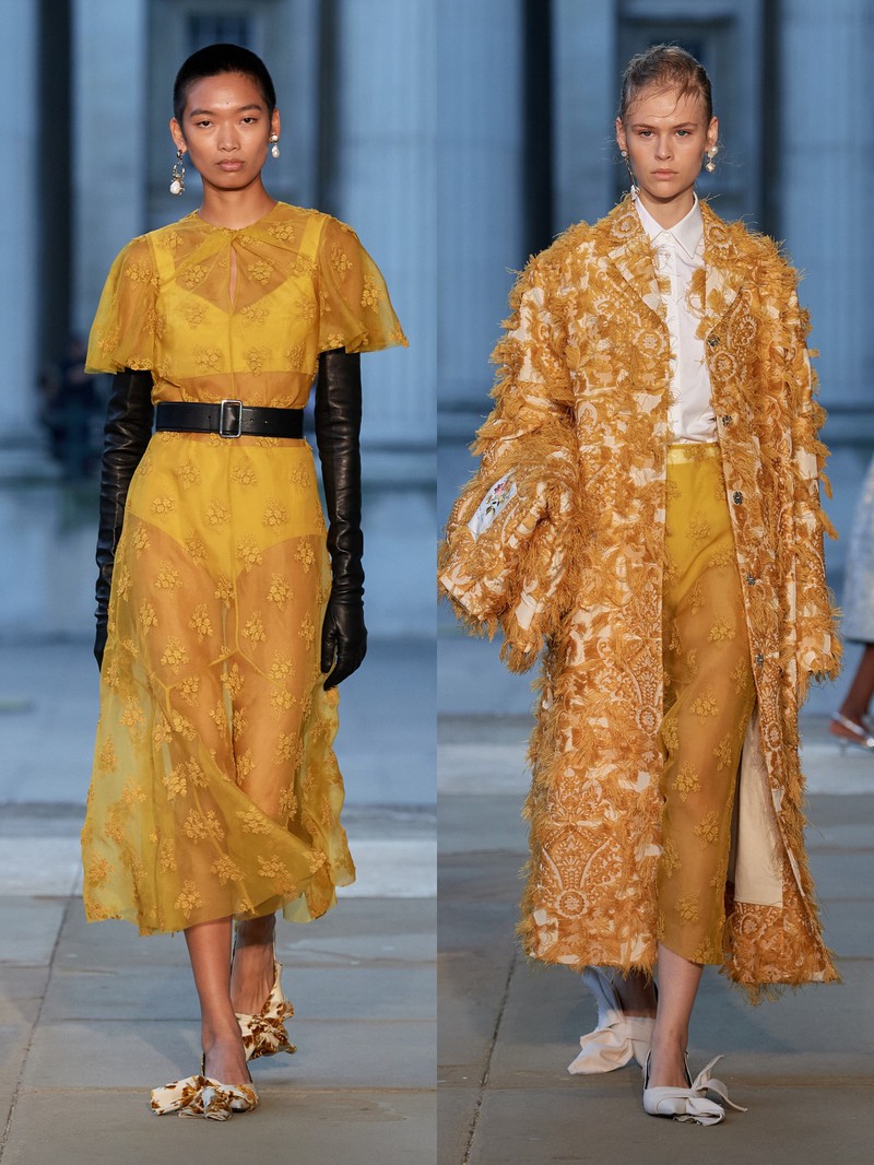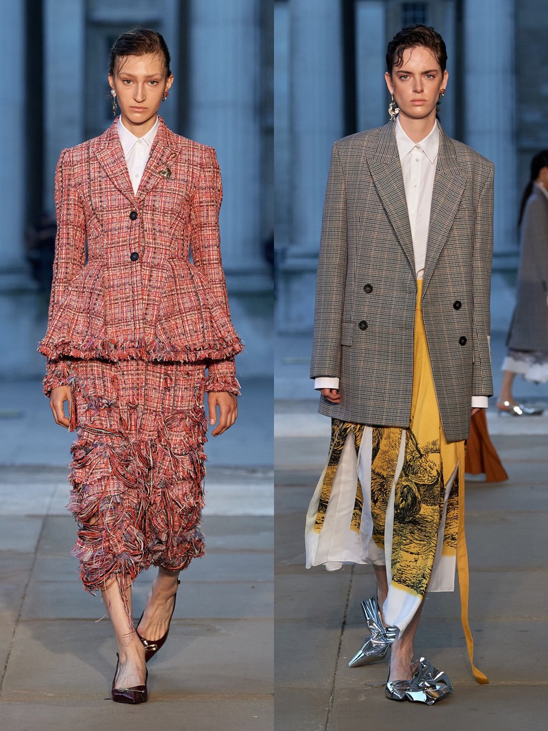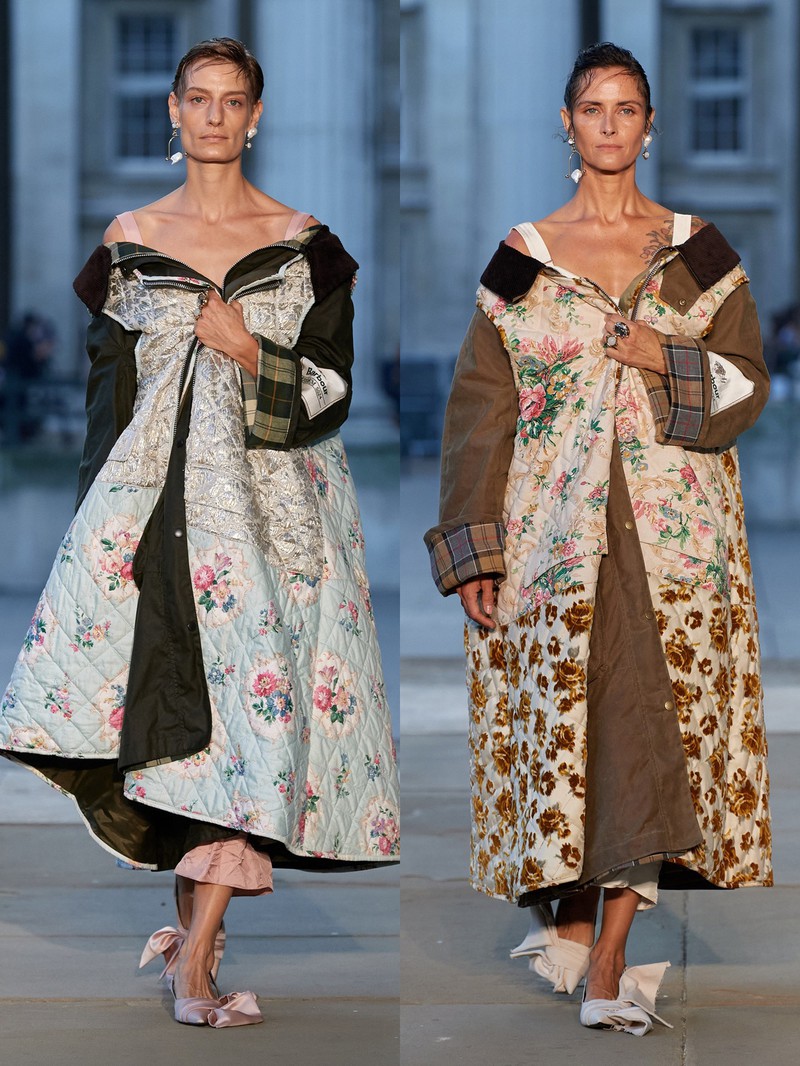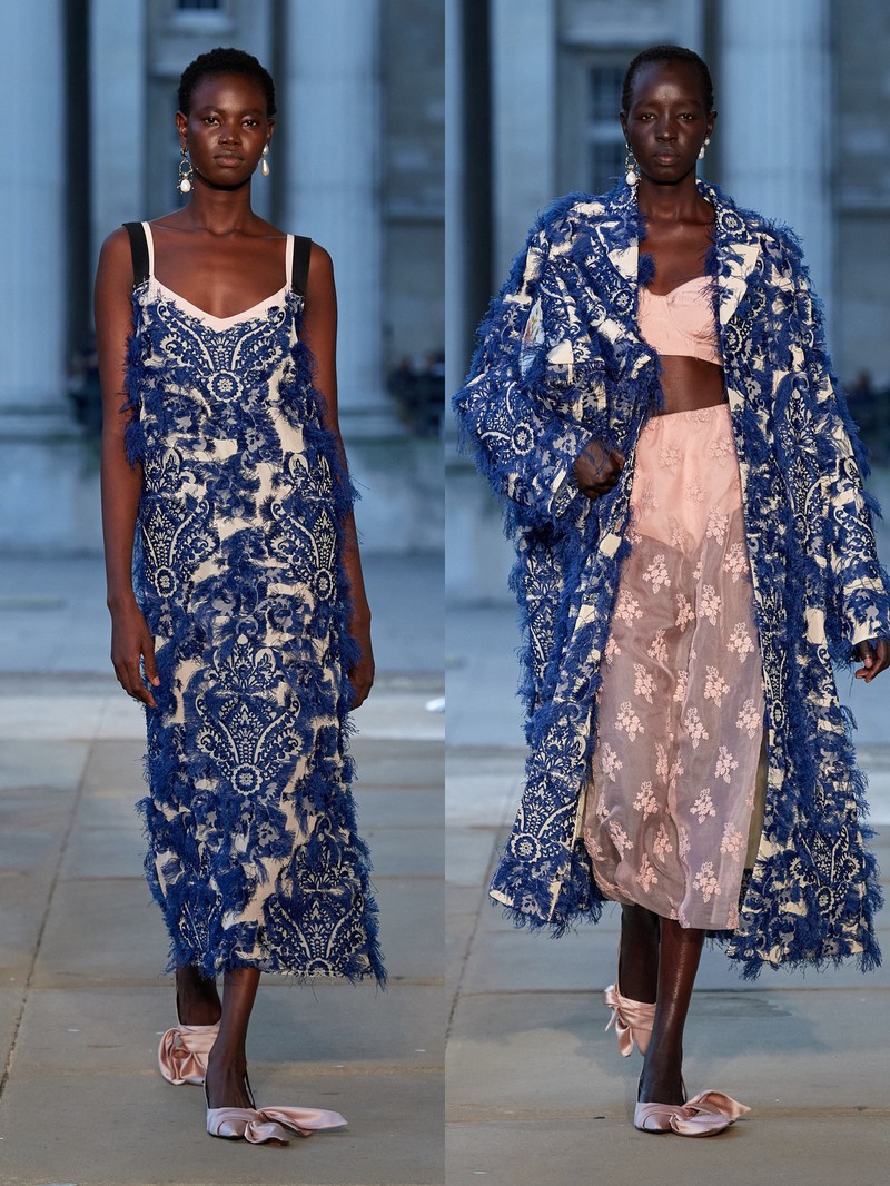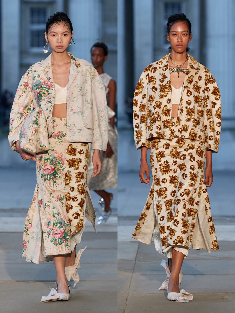 Erdem的2024春季系列堪称杰作,是一部非常英式的浪漫故事。20 世纪 40 年代的复古花卉窗帘甚至被运用到了他晚礼服的裙摆中,各种从历史档案中寻找的复古印花与生动的连衣裙混合在一起,蓝白相间的印花连衣裙上还出现了中世纪风景的放大图像。