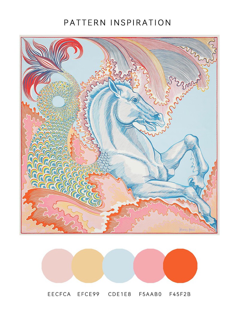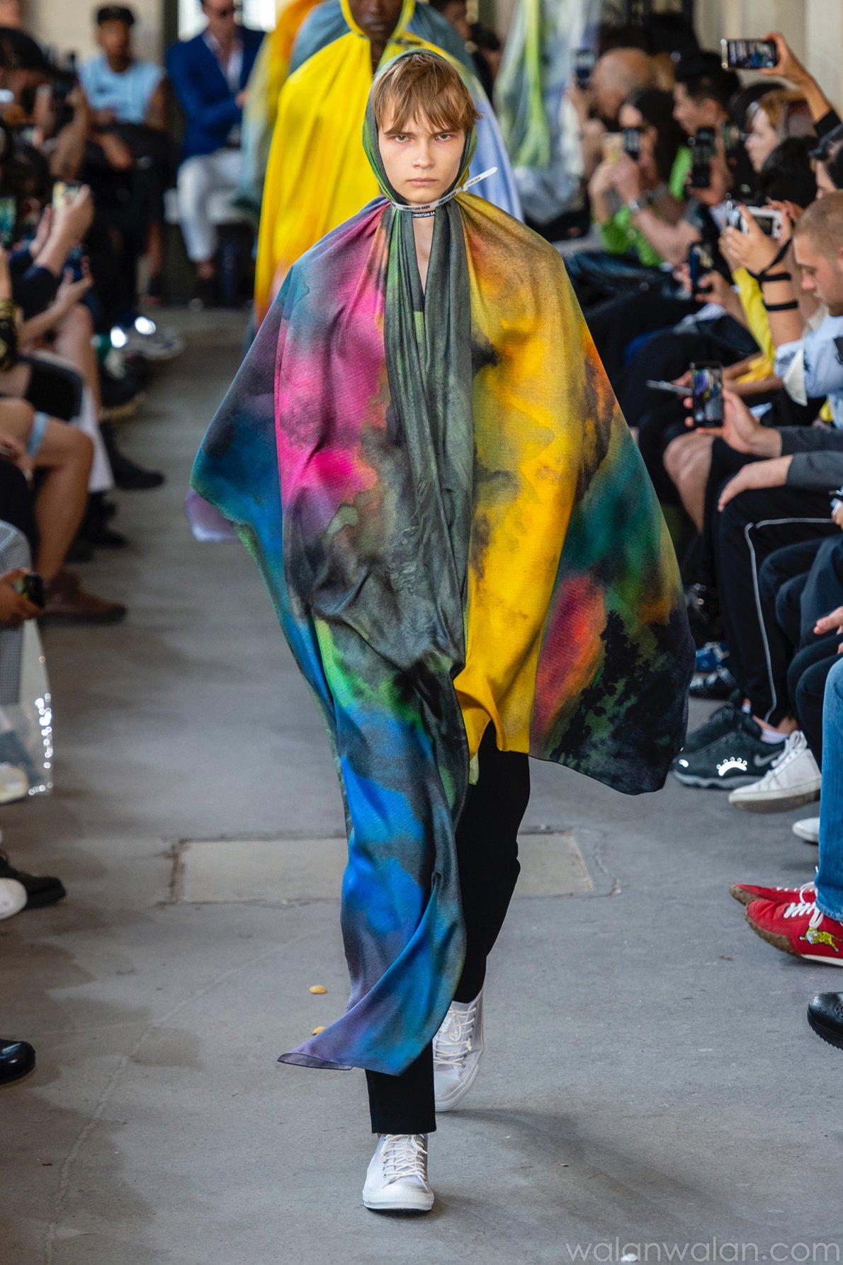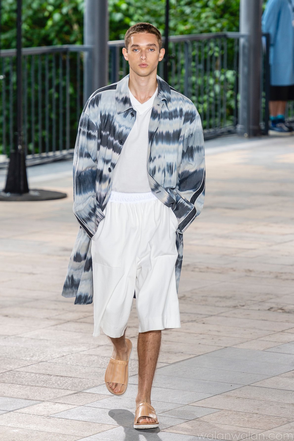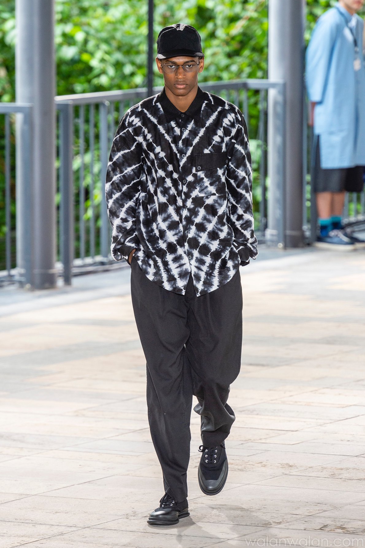 扎染风格风靡本季,出现在各大秀场和零售店当中,色彩相对柔和,图案使用柔和色彩+水彩的方式把扎染风格表达得淋漓尽致。橄榄绿和淡淡的卡其色作为主打色围绕着T台,令这些单品更具吸引力。