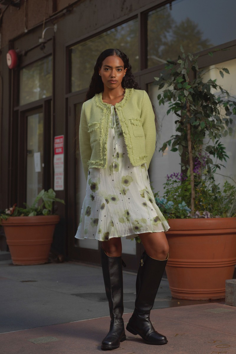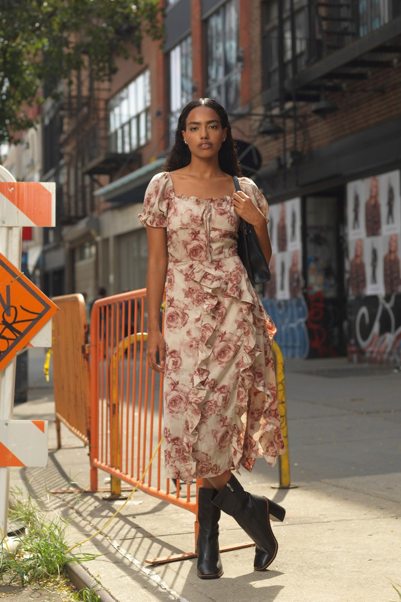 Snow Xue Gao是一个年轻的设计品牌,设计师希望为年轻的Z世代女性设计服装,这些年轻的女孩喜欢短裙,喜欢印花,也喜欢褶皱紧身胸衣和复古吊带裙,清新的浪漫小碎花让这些带点复古的服装变得更有吸引力。