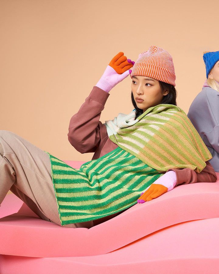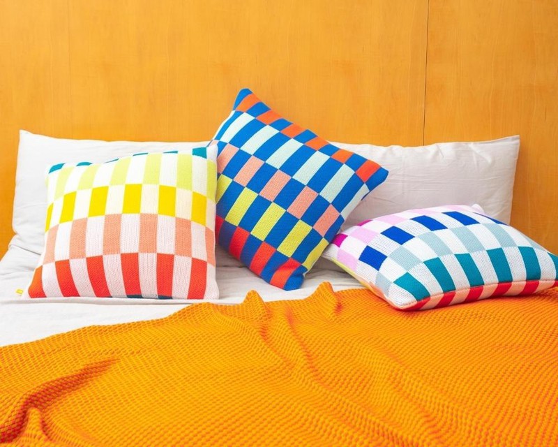 针织家居品牌VERLOOP的设计以亮眼的多巴胺彩色和几何图案的组合为特色,将大量的纺织废料通过设计变成优质、色彩鲜艳的针织产品。