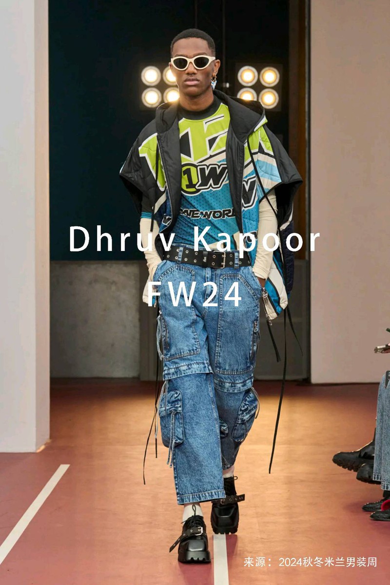 Dhruv Kapoor 亮相2024秋冬米兰男装周。Dhruv Kapoor是无所畏惧的自我表达、扭曲的现代性和强烈的情感潮流共同造就了Dhruv Kapoor品牌。