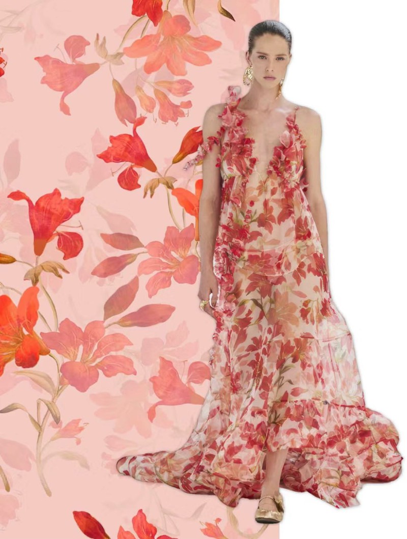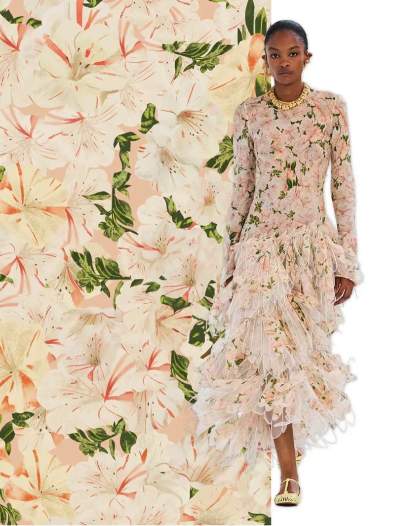 该品牌的大尺寸印花设计以层疊方式展现,色彩丰富,充满活力。每朵花都蕴含着活泼阳光与内敛雅致的意味,即使色彩饱和,依然令人印象深刻。