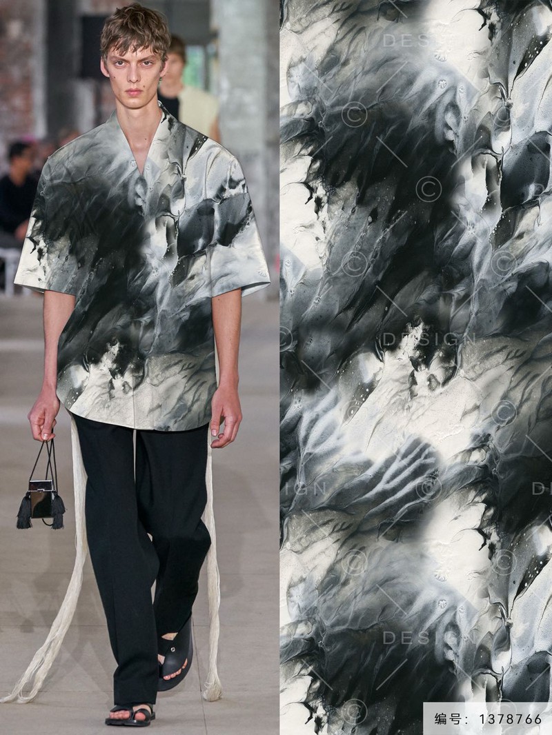 2025春夏男装秀场上,抽象肌理风图案打造极具艺术感的设计,