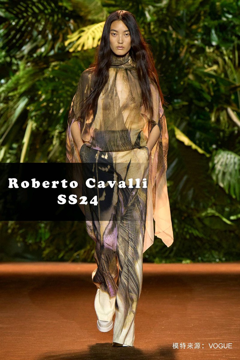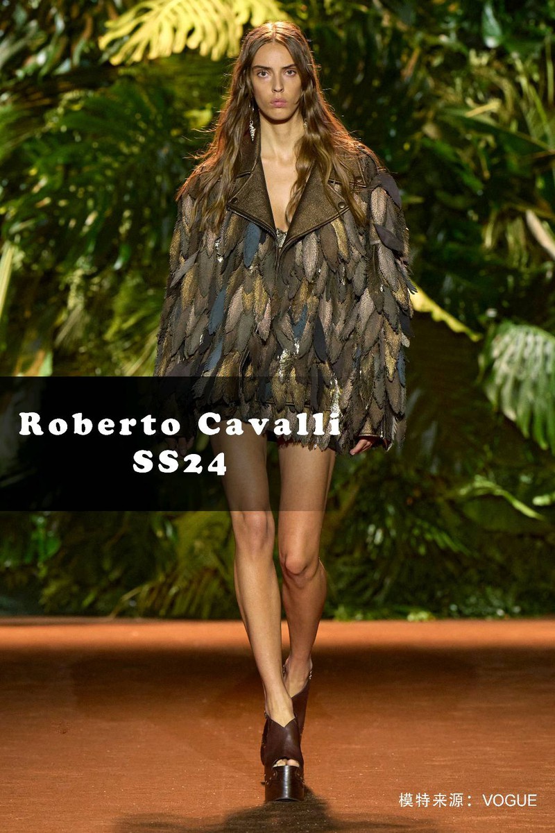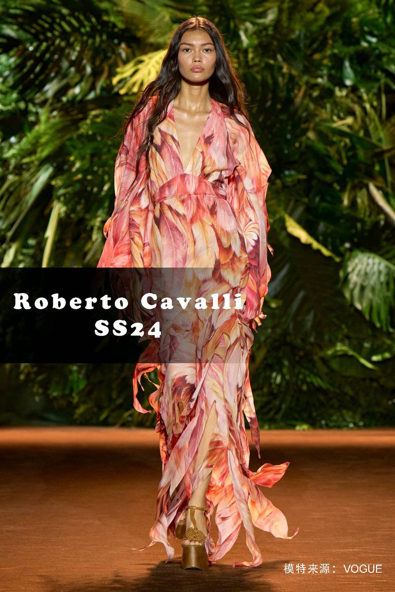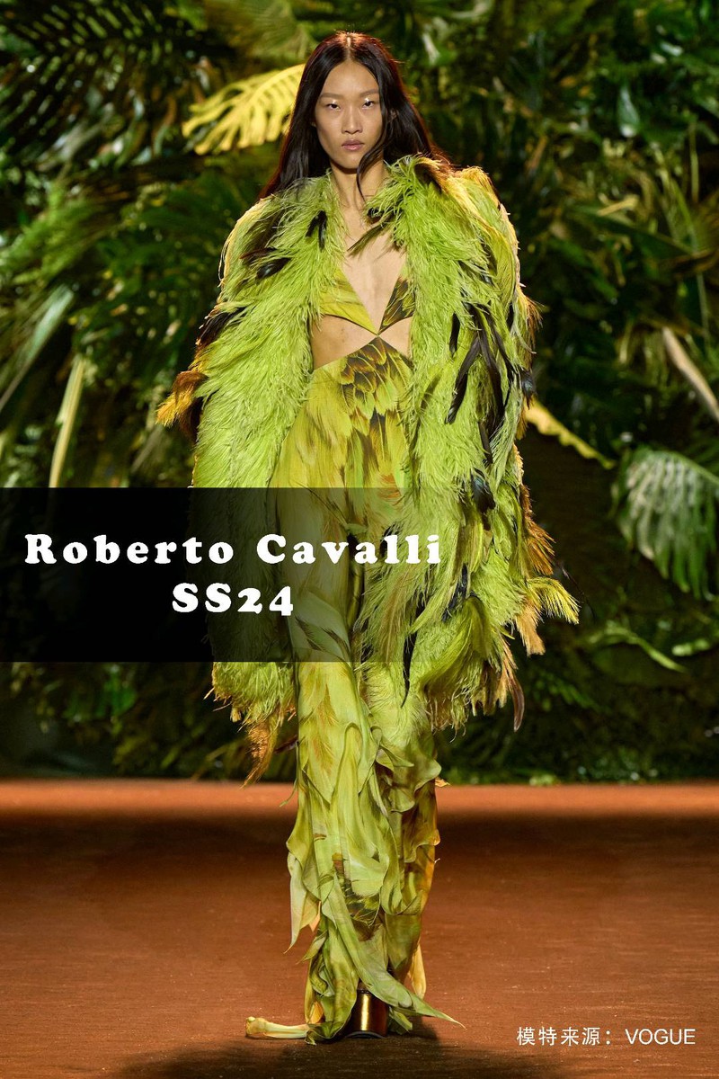 关键词:2024春夏,趋势,羽毛,动物纹,Roberto Cavalli