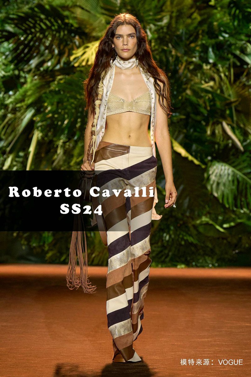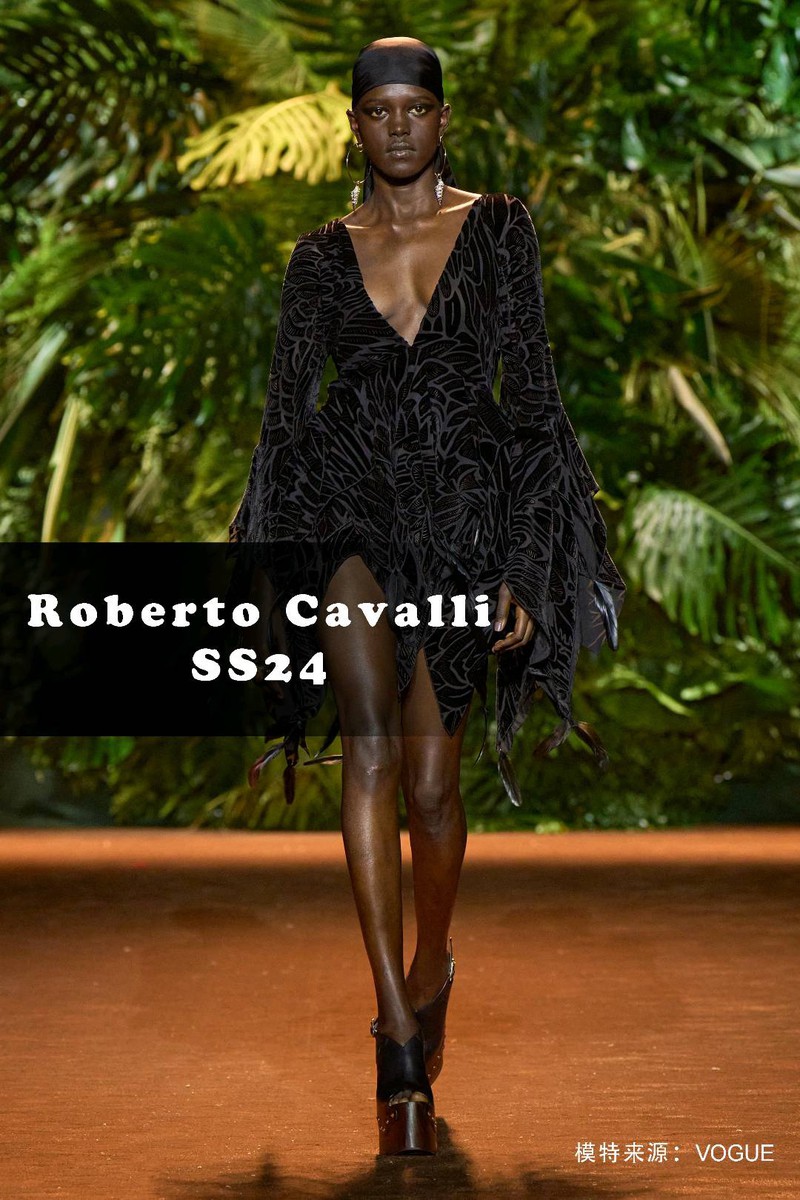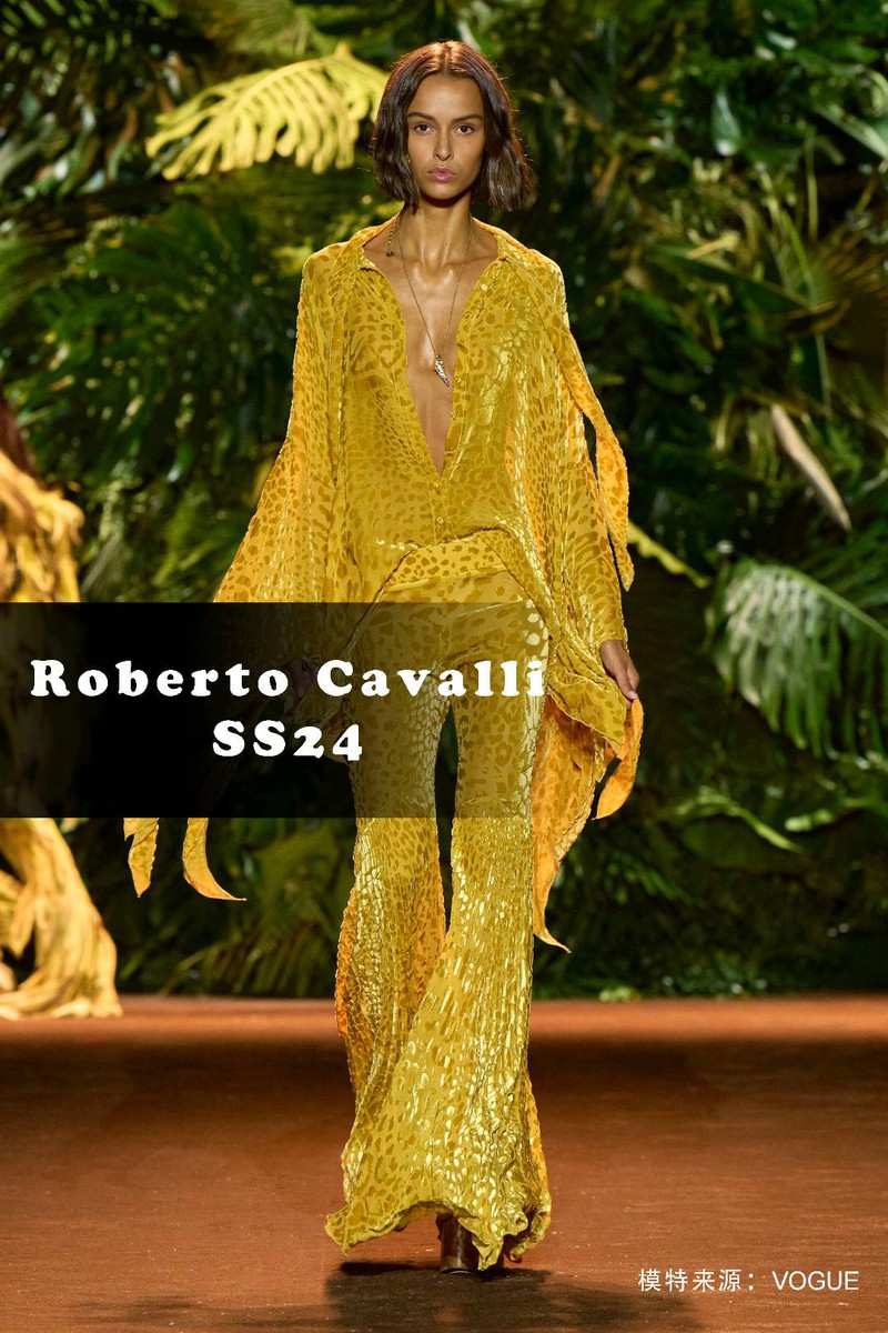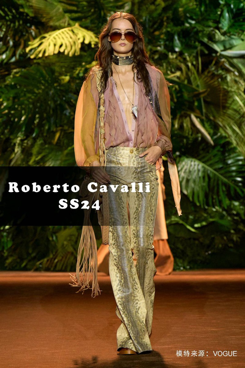 关键词:2024春夏,趋势,羽毛,动物纹,Roberto Cavalli
