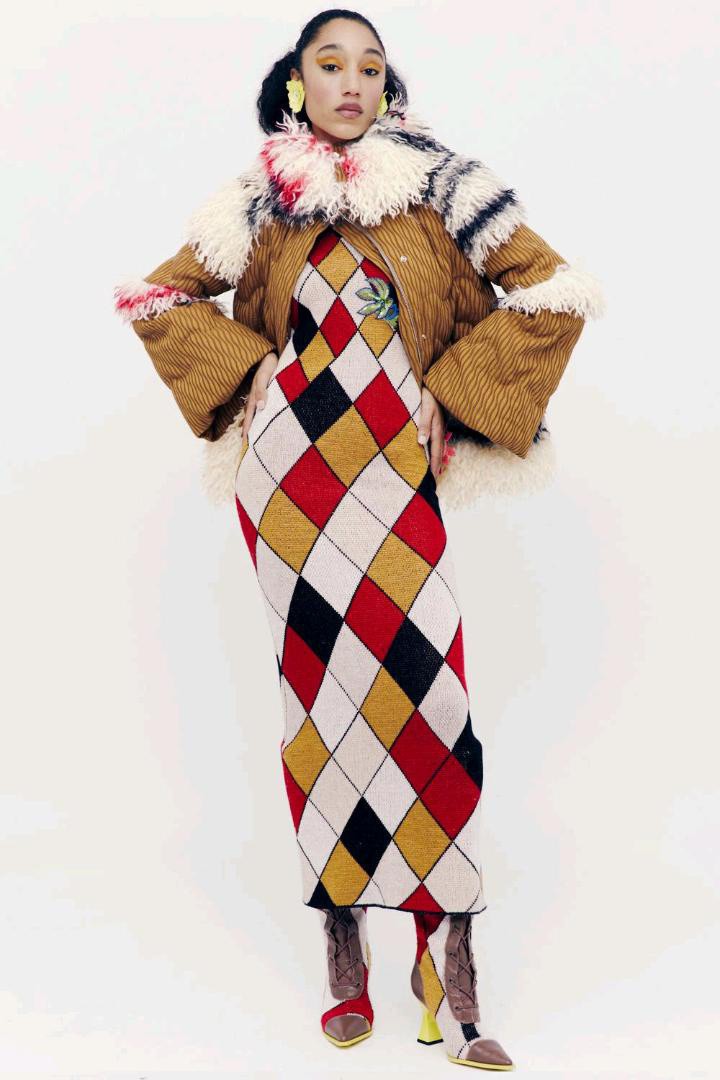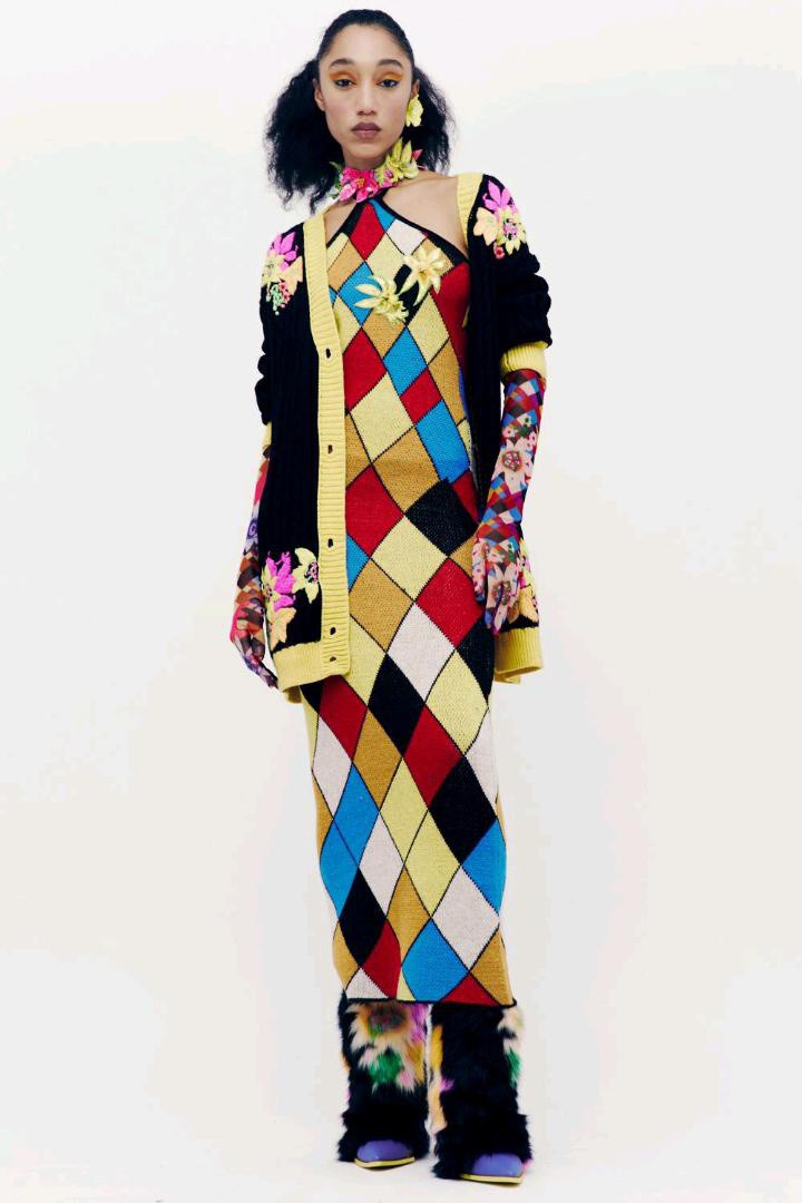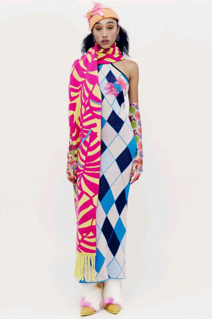 Shuting Qiu秋冬 2024 高级成衣多巴胺的活力配色菱形格,大花卉活力满满