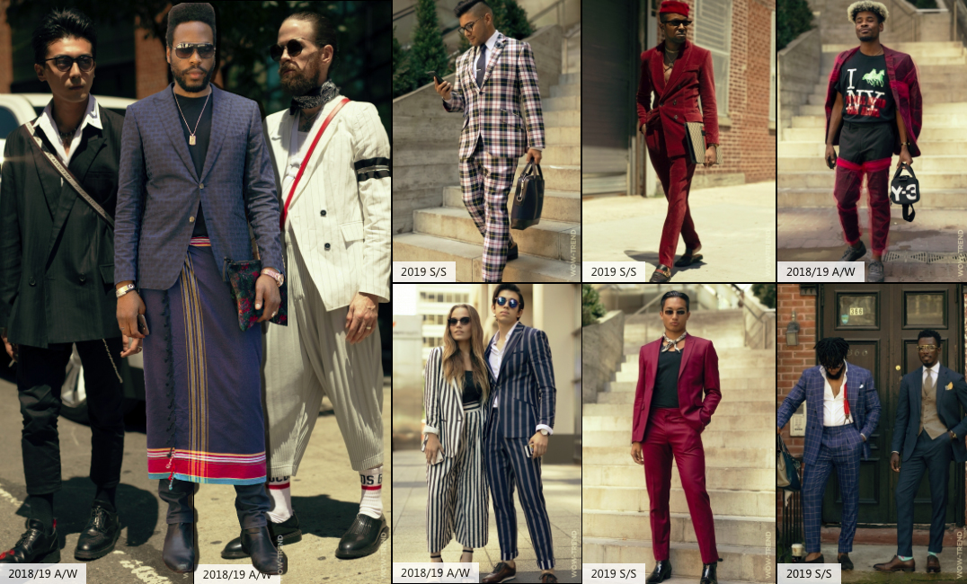 纽约的街头西装成为达人们必不可少的单品之一,无论是宽大的休闲西装还是复古的格纹西装,优雅的西装总能穿搭出百种风格。